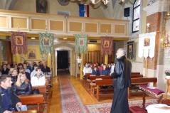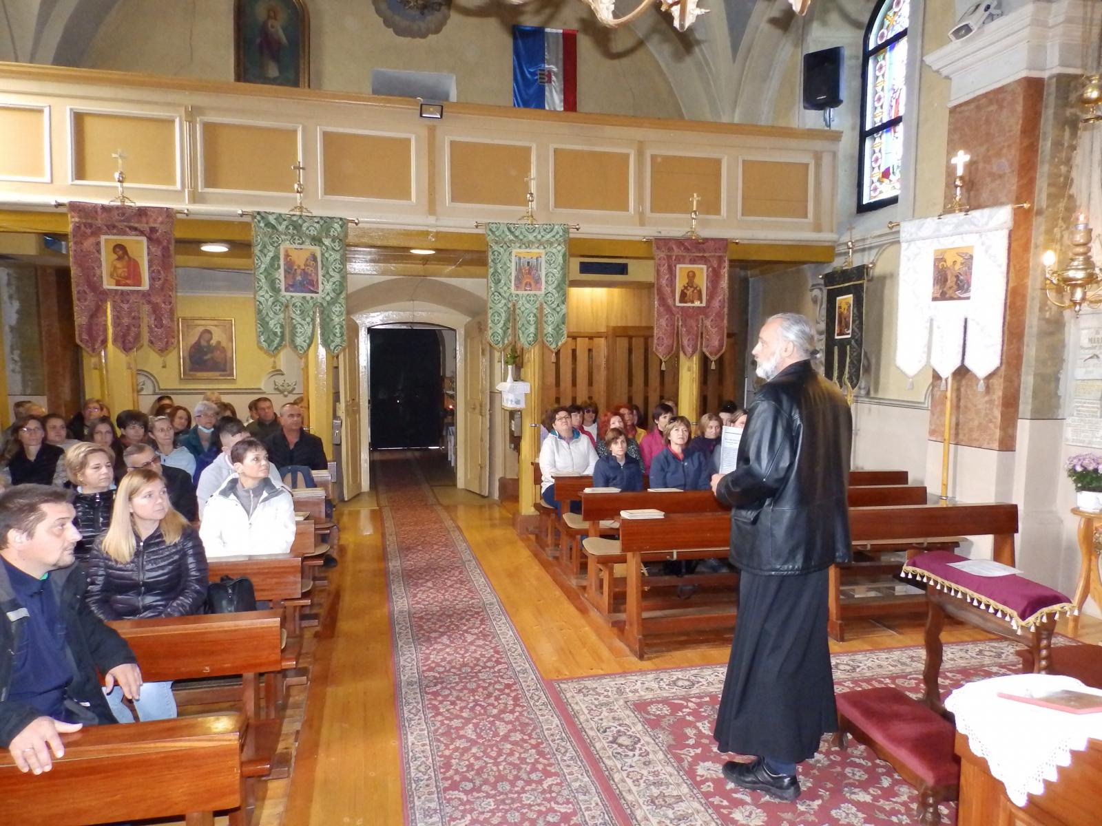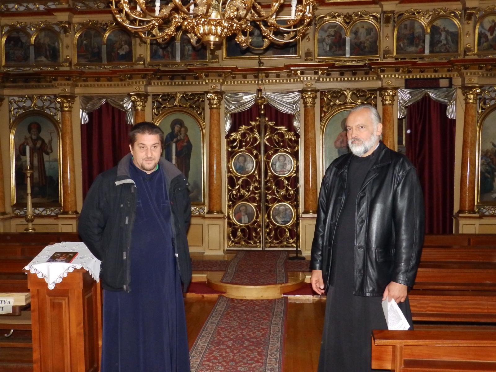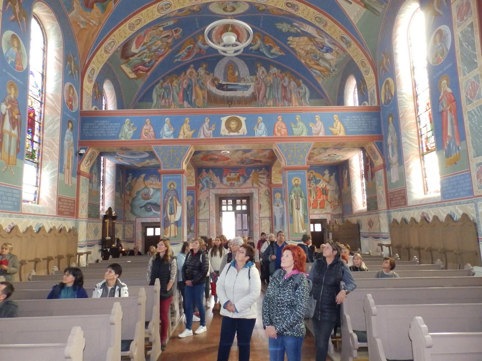 Délelőtti érkezésünkkor Kiss Attila Gellért atya fogadta csoportunkat, aki rövid előadást tartott nekünk a templom történetéről, az 1717-ben könnyező Istenszülő képének kalandos költözéseiről, az ikonosztázról, a helyi görögkatolikus közösség alakulásáról.