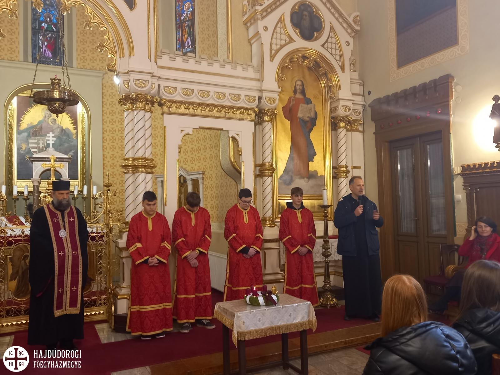 A Szent Anna Görögkatolikus Gimnázium és Technikum programját Kocsis Fülöp nyitotta meg, a közös imaórát a Rózsák terei templomban tartottuk. A metropolita a templom közelségének fontosságát is elmagyarázta a diákoknak. Az imaóra végén meggyújtotta az első gyertyát az adventi koszorún, hiszen kezdetét vette a várakozás időszaka. Ezután a napot az iskolában folytattuk, ahol görögkatolikus lelkészek és egy hitoktató adott lelki útravalót 14 osztály diákjainak. Minden csoport kapott egy ideiglenes lelki vezetőt, aki nem csupán előadást tartott, hanem interaktív beszélgetést vezetett az adventről, a karácsonyról, a test és lélek egységéről a példabeszédek segítségével. Útmutatást kaptunk arról, hogy nemcsak az advent fontos, hanem az utána következő időszak is. Elgondolkodtató volt, hogy az előkészületre, Krisztus születésére való felkészülésre idő kell, ami lassú folyamat, hiszen most van itt az idő elmélyedni és elcsendesedni.