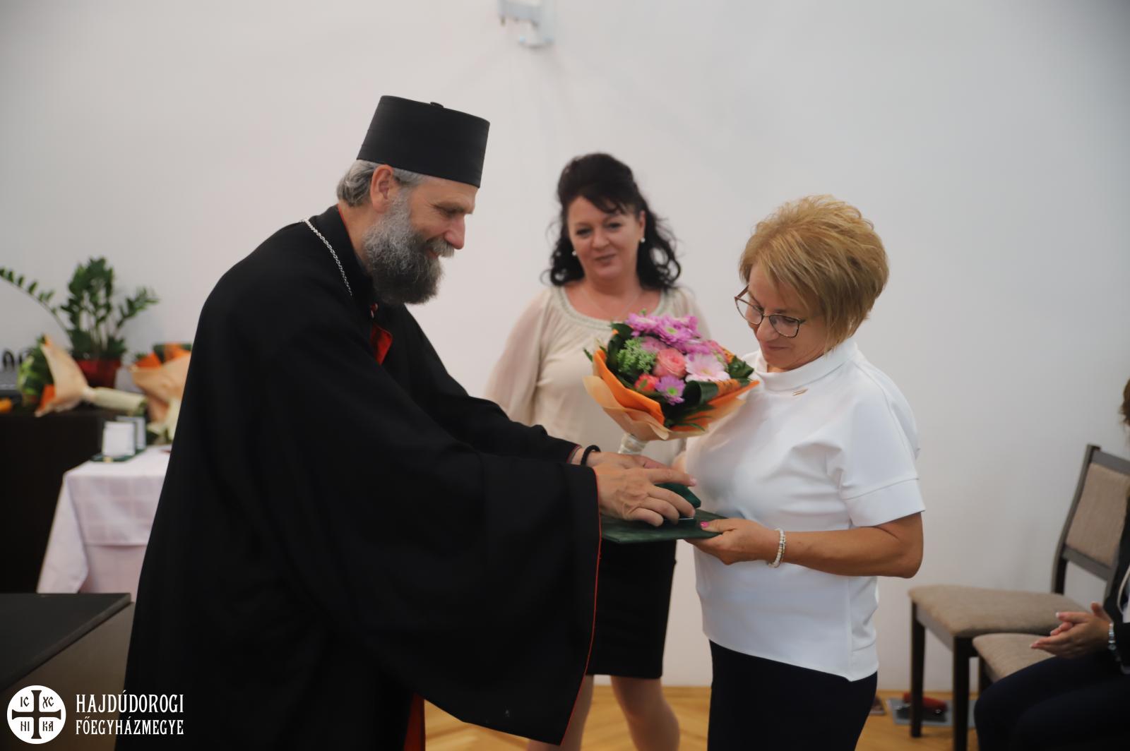 A Hajdúdorogi Főegyházmegye fenntartásában működő köznevelési és szakképzési intézményekben dolgozó munkatársak közül pályafutásuk eredményességét, személyes értékeiket és az intézmény hitéleti arculatának erősítése terén nyújtott példaértékű teljesítményüket elismerve, az alábbi díjakat adományozta Fülöp metropolita: