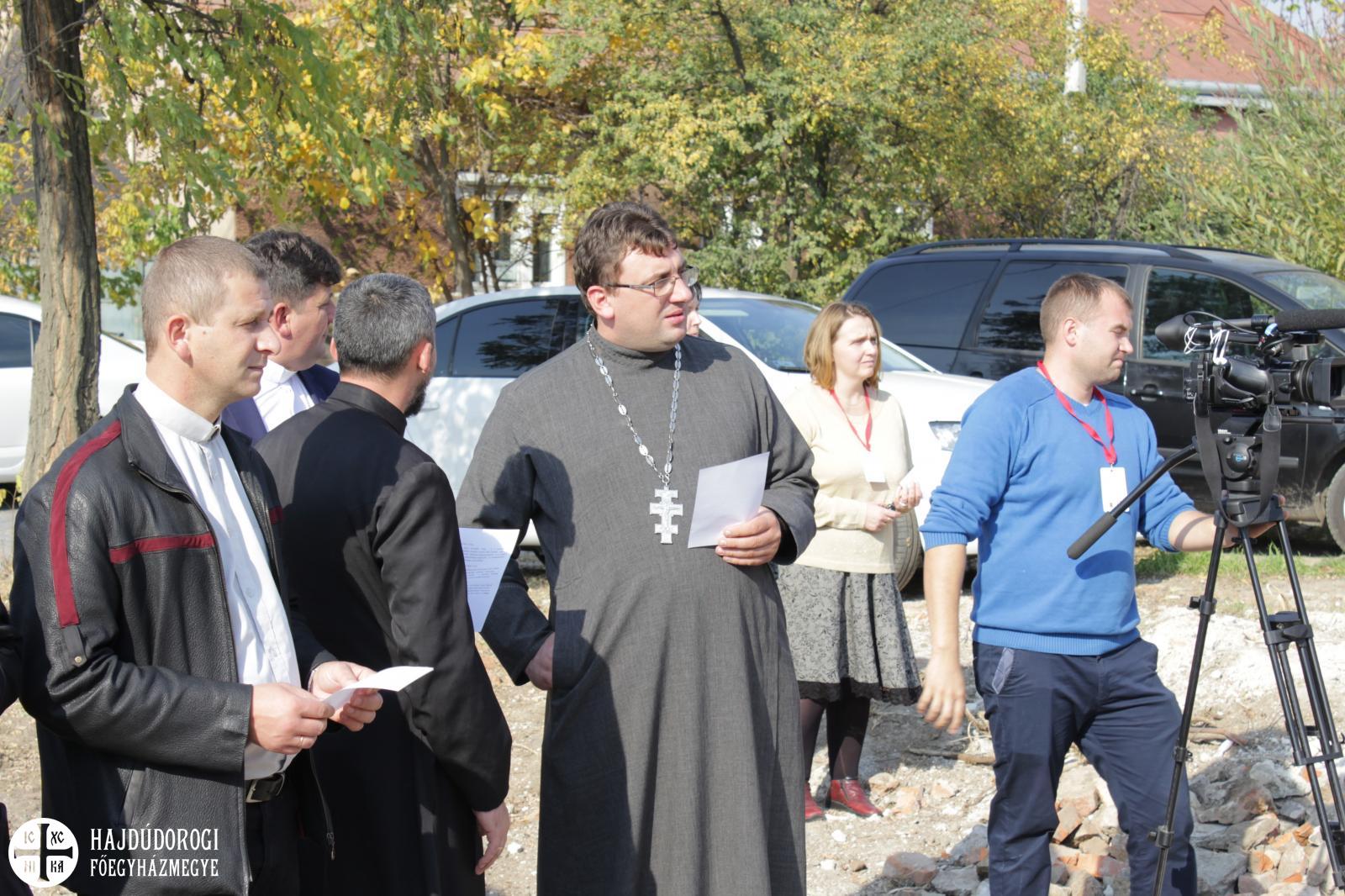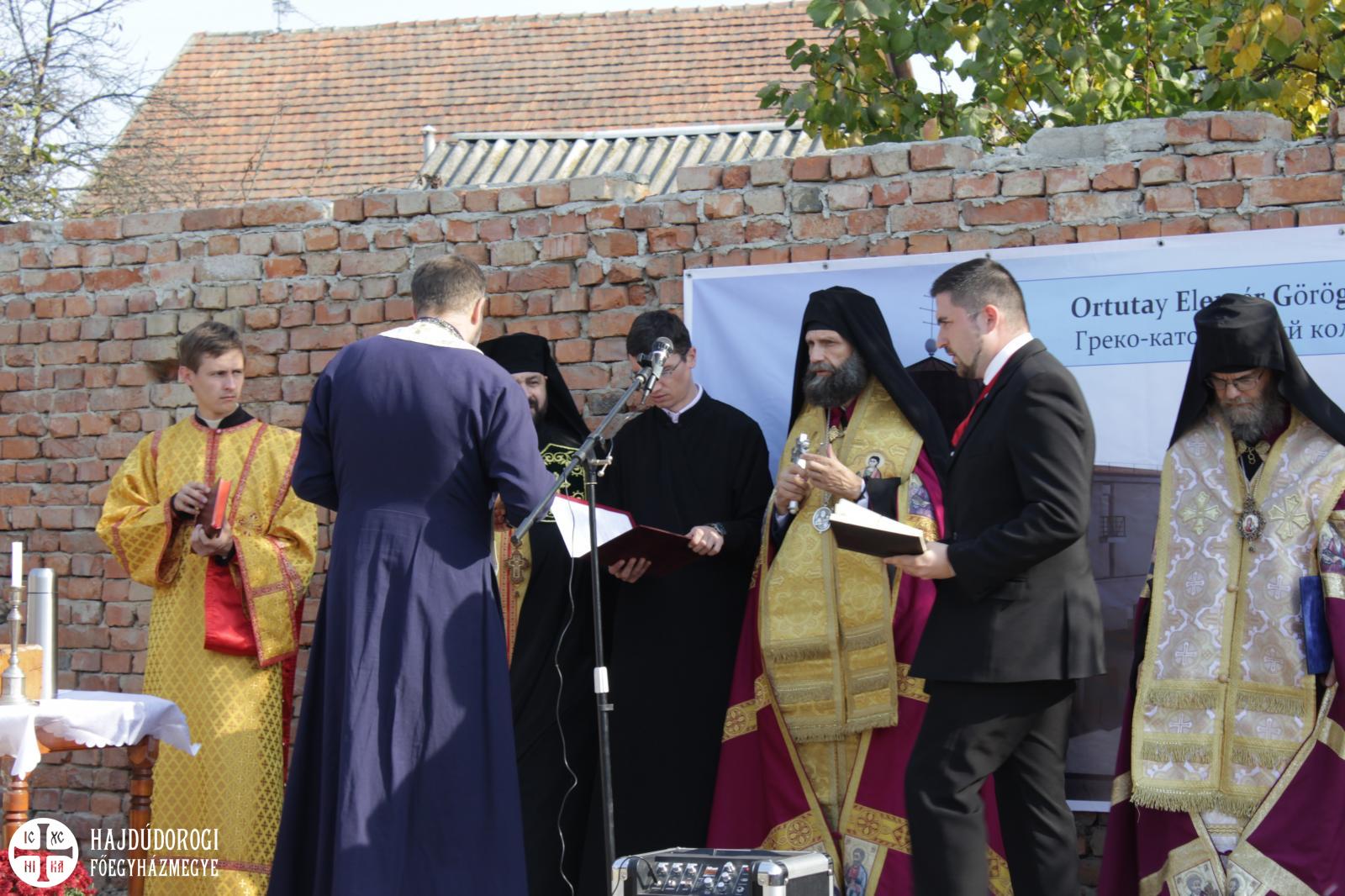 Az alapkövet Kocsis Fülöp áldotta meg Orosz Atanáz püspök atyával és Béres Péter Pál ungvári rektorral együtt. Az Evangélium elhangzása után mondott beszédében a metropolita atya annak fontosságát hangsúlyozta, hogy ez a nagyszabású kultikus és kulturális központ, amely hamarosan egy új templommal is kiegészül, első lépéseként egy szálláshelyet alakít ki. Itt fog működni tovább az Ortutay Elemér Görögkatolikus Kollégium, itt kapnak otthont azok a kárpátaljai diákok, akik főiskolai tanulmányaikat Beregszászon végzik. Ma különösen is fontos, hogy helyünk legyen a világban, ahová visszatérhetünk, ha el is indulunk, ne feledkezzünk meg az otthonról, ami visszahív, visszavár. Ma talán jobban féltjük fiataljainkat, amikor útnak indulnak, mert attól tartunk, hogy nem jönnek vissza. Igen, ma nagyon sokféle és összetett erők késztetik az embereket, hogy induljanak el, a hidakat égessék föl maguk mögött, kezdjenek új életet. Pedig az emberi élet az ősök gyökereiből táplálkozik. Egyáltalán nem mindegy, hogy hová születtünk, milyen családba, nemzetbe tartozunk, milyen nyelven beszélünk. Ezek Isten ajándékai, amelyekről soha meg nem feledkezhetünk, melyek egész életünkön át végigkísérnek.