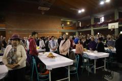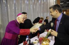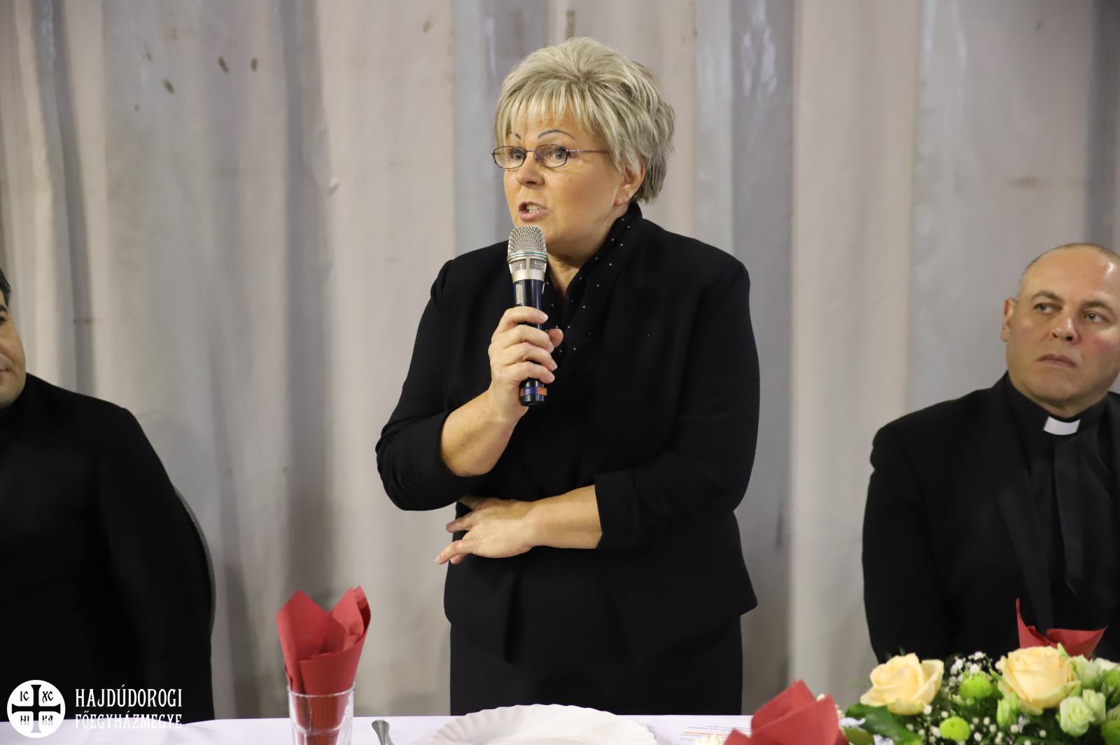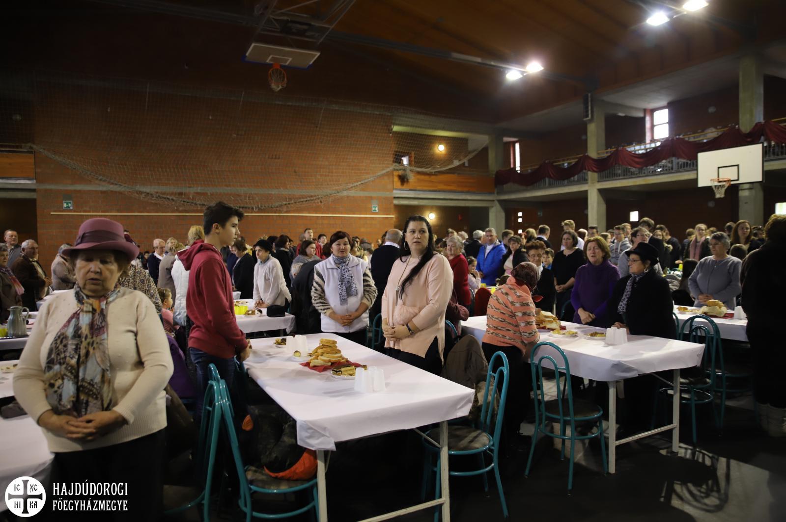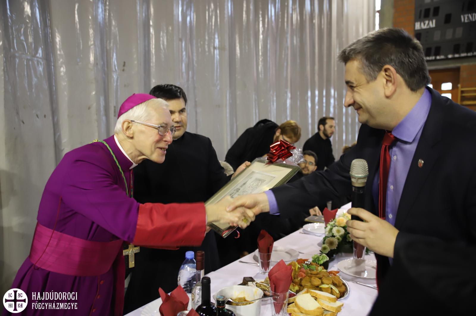 A közös ünneplés a gimnázium tornacsarnokában közös agapéval folytatódott. Több mint ötszáz ember ült együtt a pápai nunciussal, s ekkor Csige Tamás, Hajdúdorog polgármestere és Vasas Lászlóné, a Hajdú-Bihar Megyei Kormányhivatal főigazgatója köszöntötte a magas rangú vendégeket.