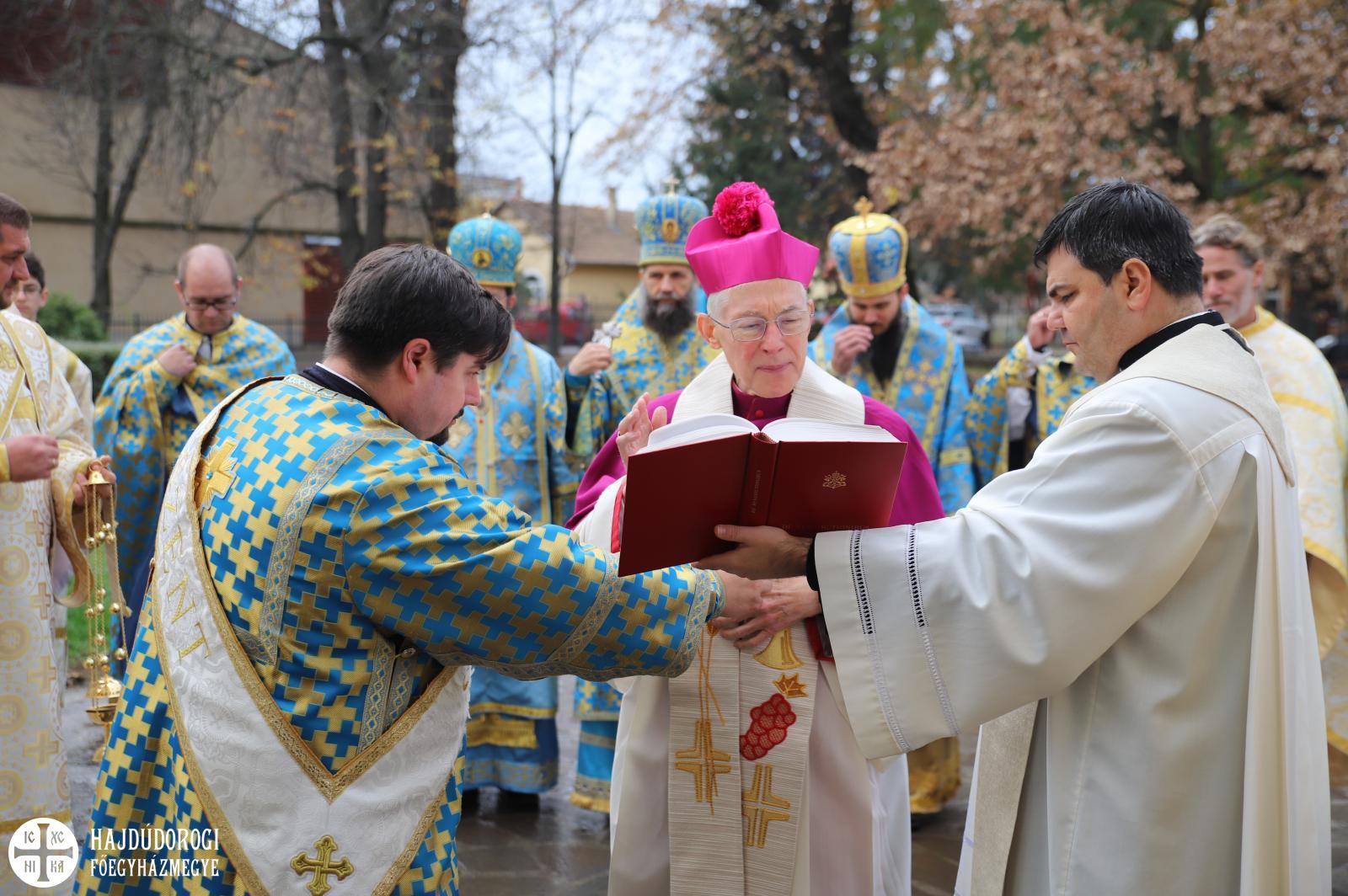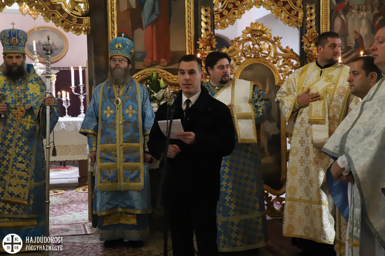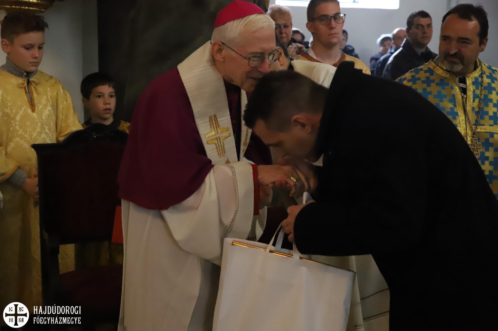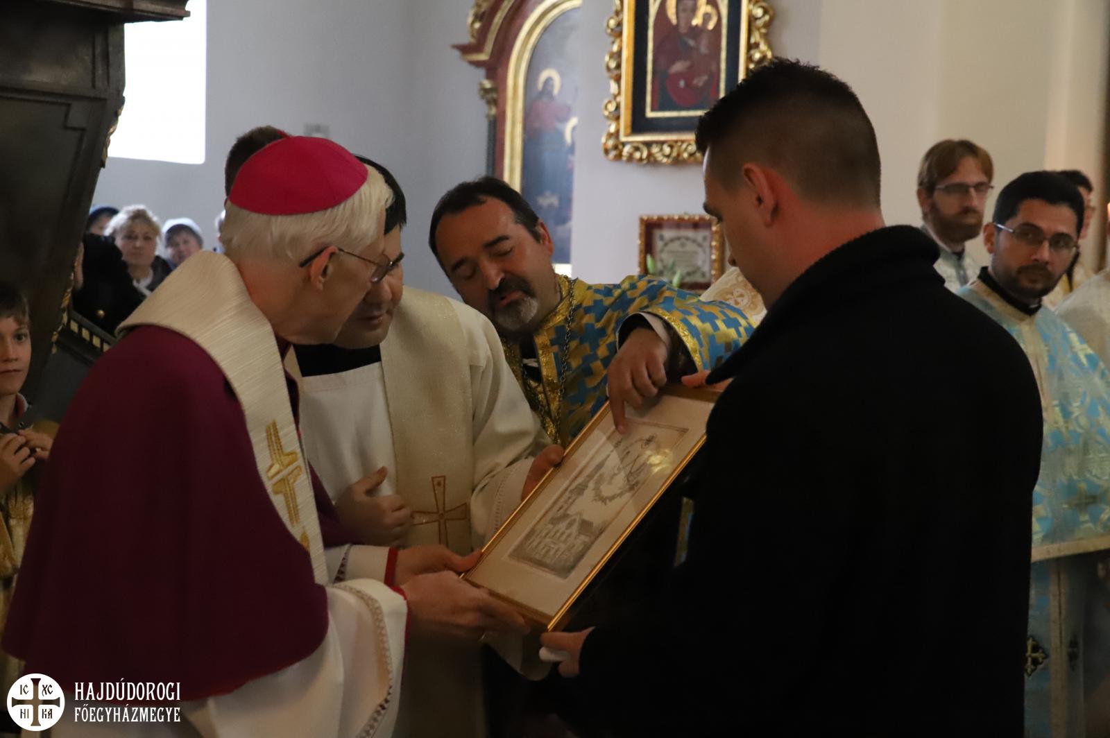 Majd Horváth Zoltán, a hajdúdorogi Krisztus-katonák káplárja köszönte meg az apostoli nunciusnak, hogy ellátogatott arra a településre, amely a görögkatolikus hitélet leghűségesebb városa címet is magáénak tudhatja, hiszen az itt élők ősei küzdöttek legodaadóbban a magyar nyelvű liturgiáért, valamint az önálló egyházmegyéért.