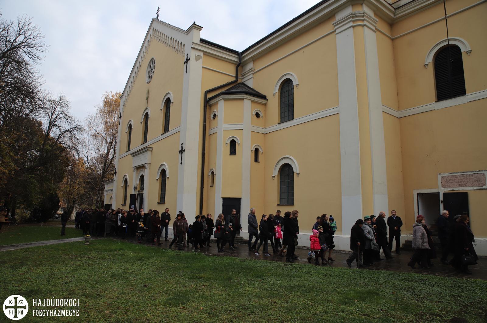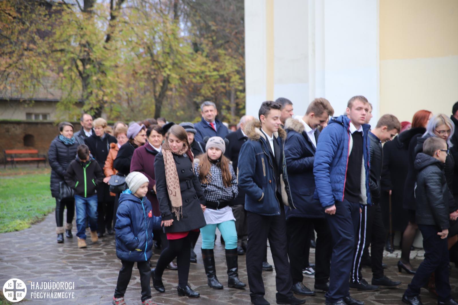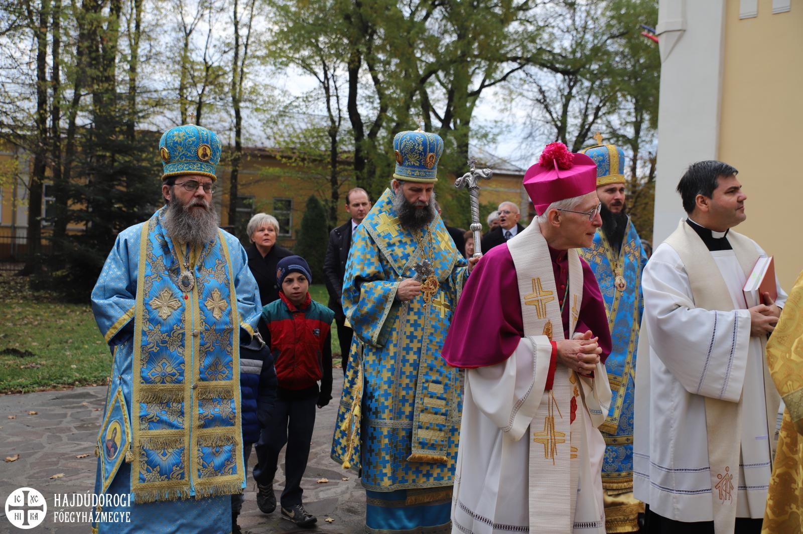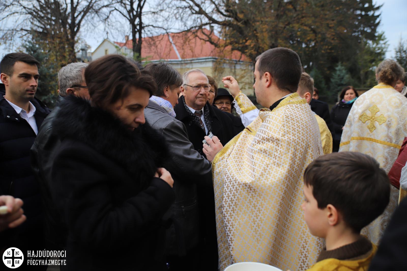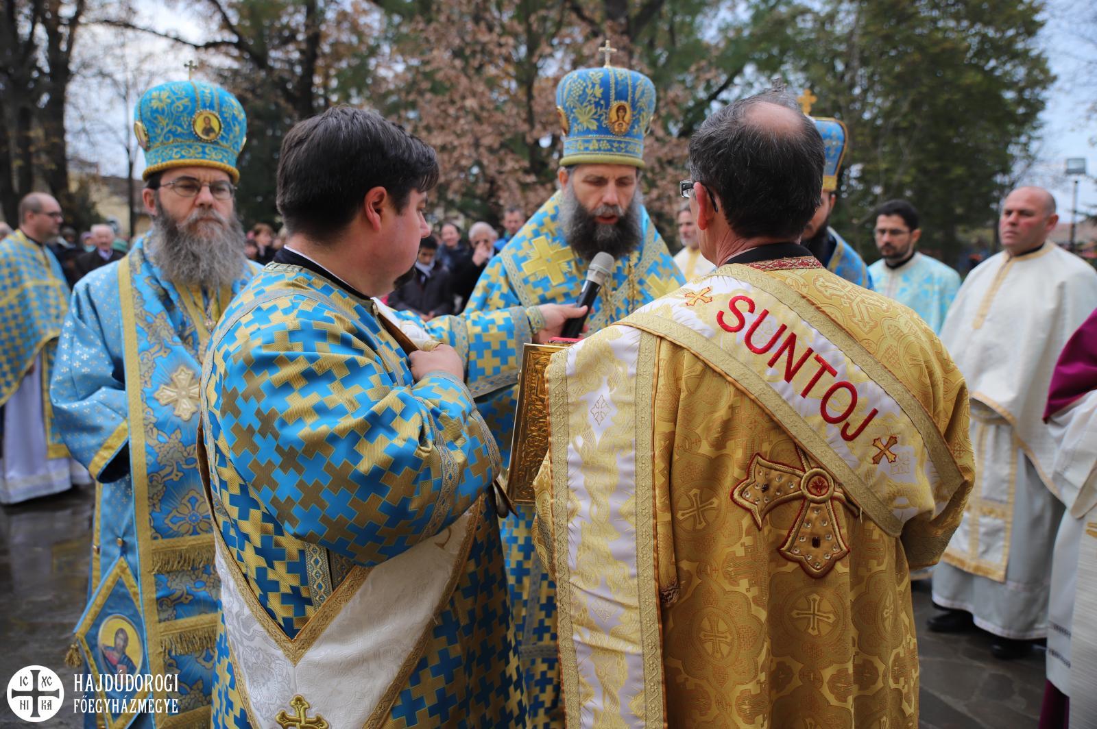 Majd Horváth Zoltán, a hajdúdorogi Krisztus-katonák káplárja köszönte meg az apostoli nunciusnak, hogy ellátogatott arra a településre, amely a görögkatolikus hitélet leghűségesebb városa címet is magáénak tudhatja, hiszen az itt élők ősei küzdöttek legodaadóbban a magyar nyelvű liturgiáért, valamint az önálló egyházmegyéért.