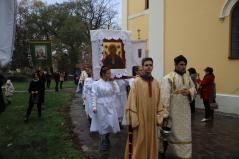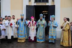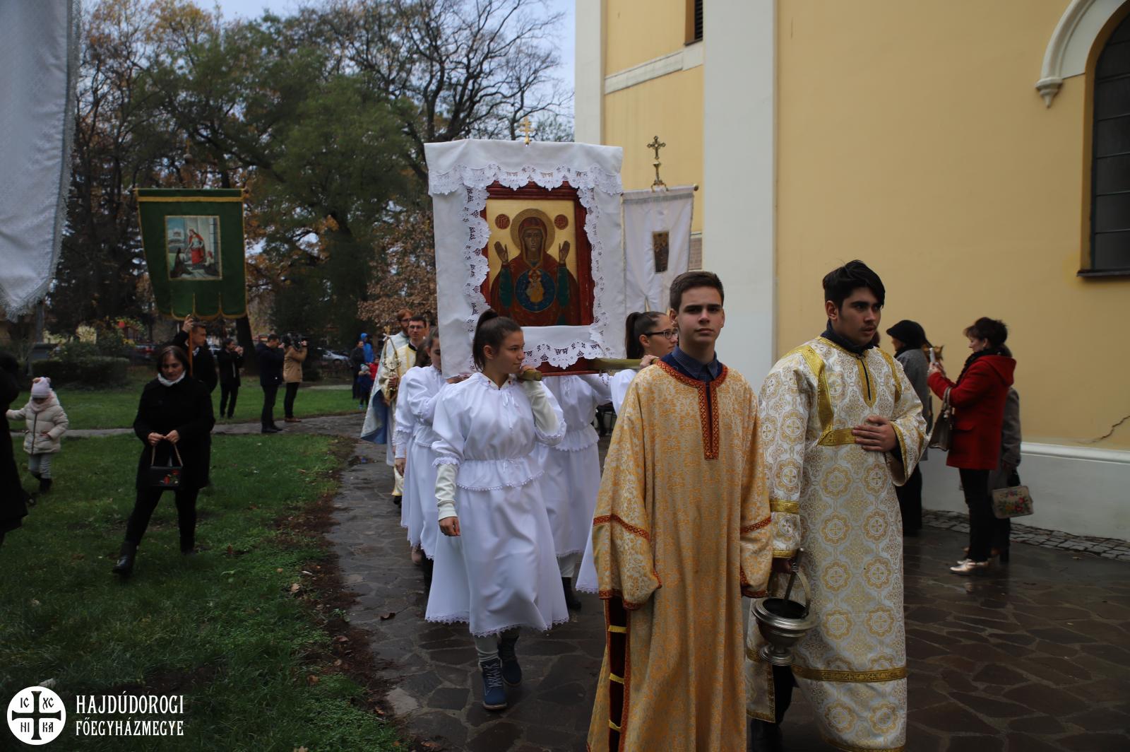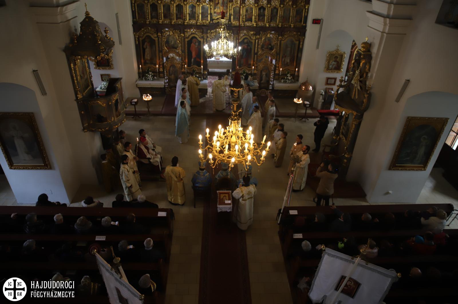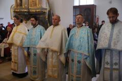 Ez idő alatt az Istenszülő templomba vezetésének tiszteletére épült és felszentelt székesegyház is megtelt hívekkel, akik ezen a vasárnapon búcsúi ünnepre érkeztek. A különleges alkalmon a szentszéki nagykövet prédikált, gondolatait pedig azzal kezdte, hogy mennyire hálás a meghívásért, hiszen Apostoli Nunciusként először vesz részt görögkatolikus Szent Liturgián.
