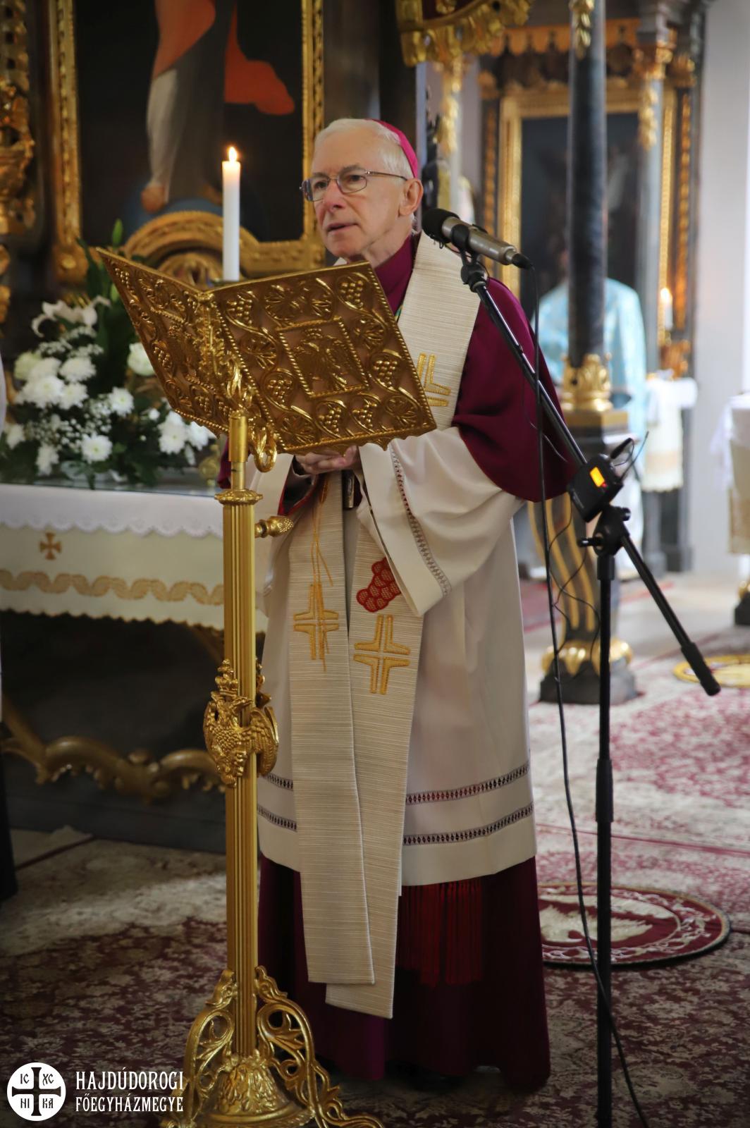 „Afrika három országában, ahol az elmúlt 13 évben szolgáltam, nem volt túl sok keleti katolikus egyház. Itt Magyarországon ti sokan vagytok és vannak saját püspökeitek. Adjunk hálát ezért az Istennek Szent II. János Pál szavait idézve, aki úgy beszélt a keleti és nyugati egyházakról, mint két tüdőről, amellyel az Egyház lélegzik! Köszönetet mondunk Istennek, hogy ezen a szertartáson láthatjuk és érzékelhetjük, annak a kegyelmét, hogy Krisztusban egységben vagyunk Őszentsége Ferenc pápa vezetése alatt, akit Isten kegyelméből ma én képviselhetek itt.” – mondta a szentszéki nagykövet, majd Lukács evangéliumának szavairól folytatta az elmélkedést. „Boldog a méh, amely hordozott, és az emlő, amelyet szoptál!” (Lk 10,38-42; 11,27-28) – kiáltott fel egy Jézust követő asszony, aki nagyon hamar megértette, hogy Isten áldása van Nagyasszonyunkon és az ő fián, Jézuson.
