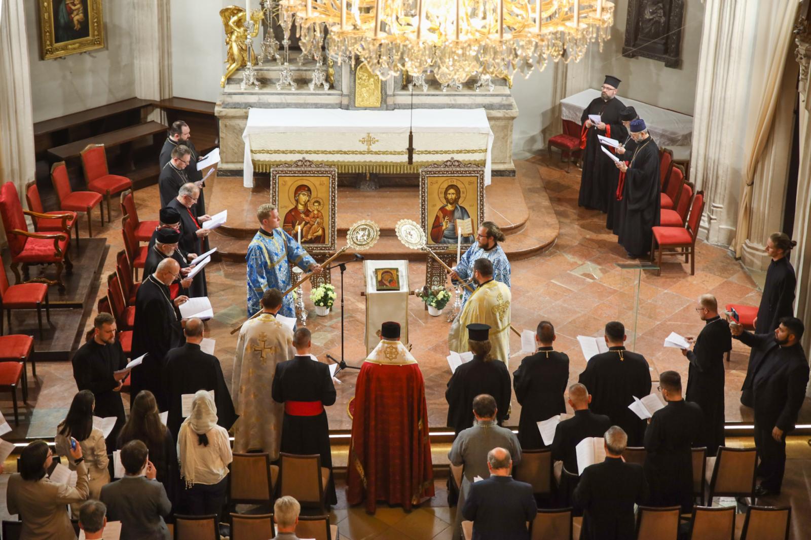 Schönborn bíboros meghívására az osztrák fővárosba érkezett 10 görögkatolikus püspök. A nagyszabású találkozó természetesen közös imádsággal kezdődött a Hofburg császári kápolnában. Az akathisztoszt a püspökök vezetésével ószlávul, románul, magyarul, szlovákul, ukránul, angolul és németül énekelték a jelenlévők.