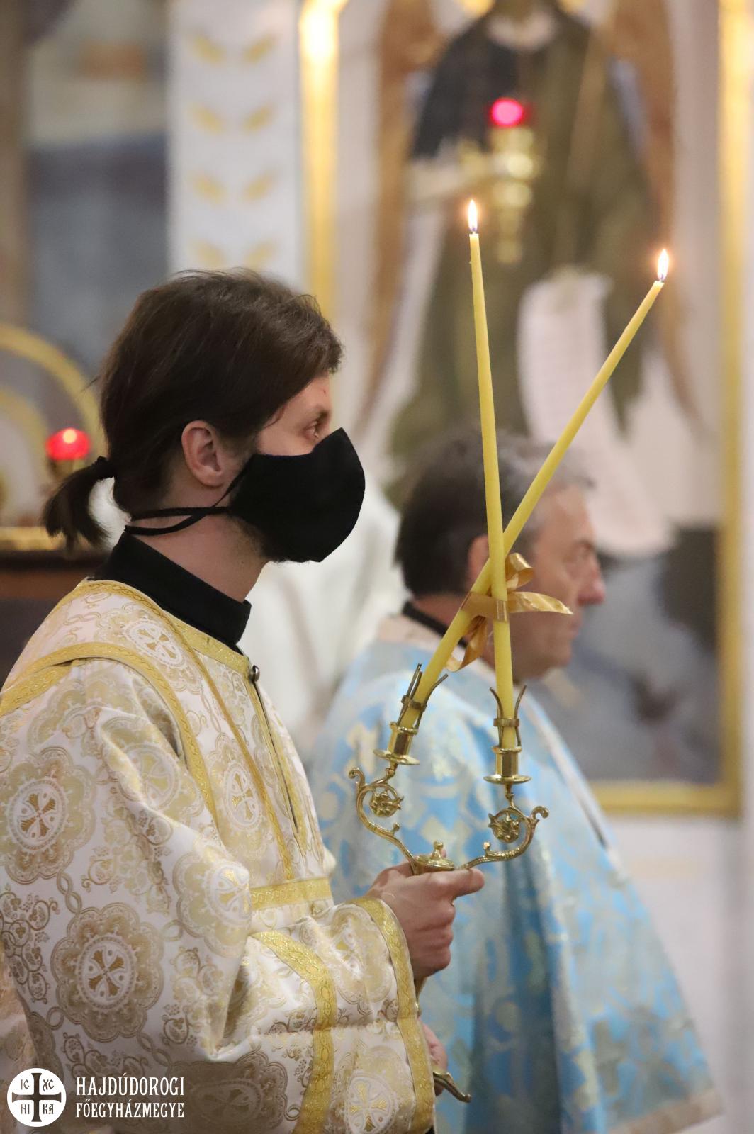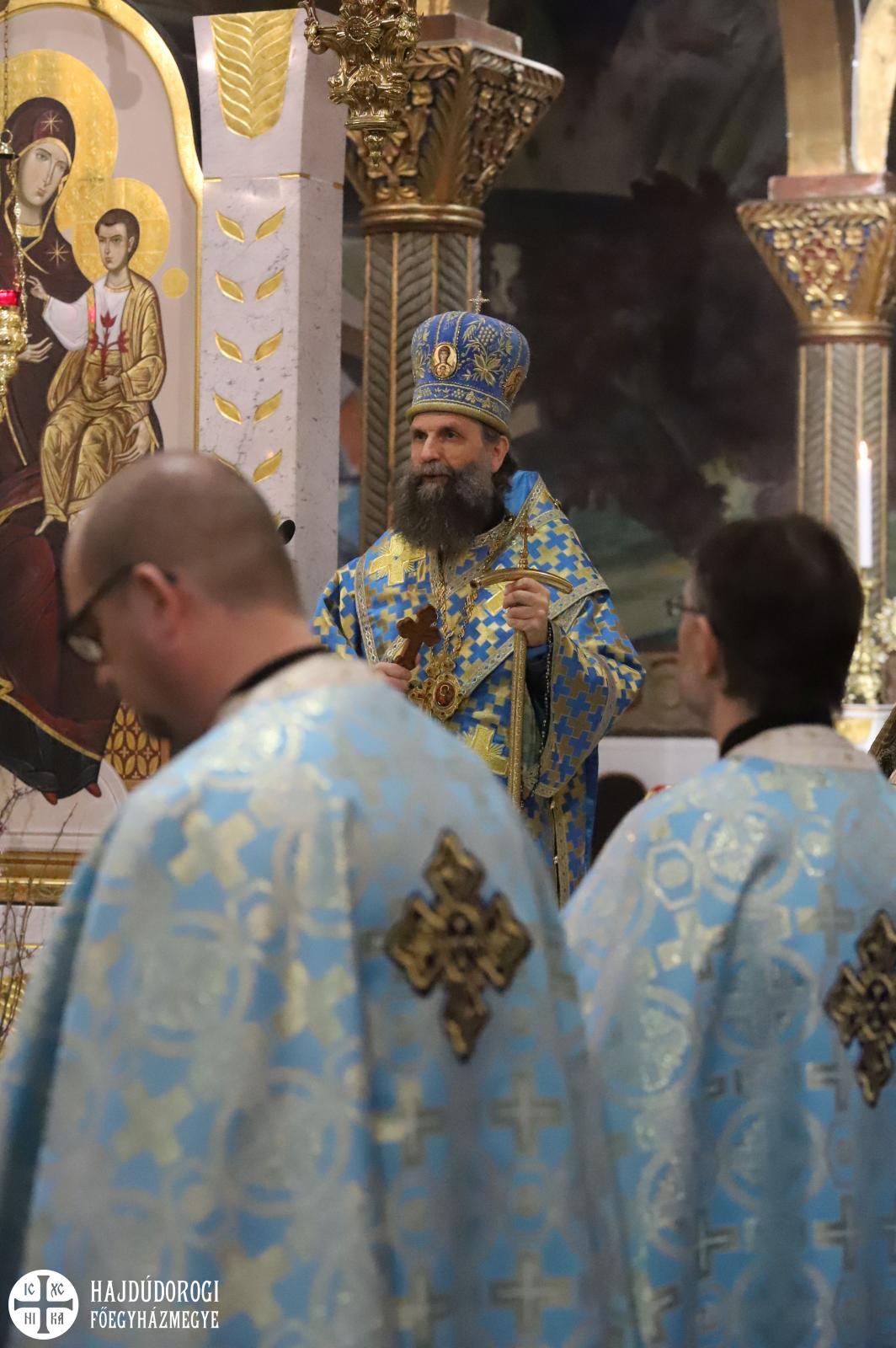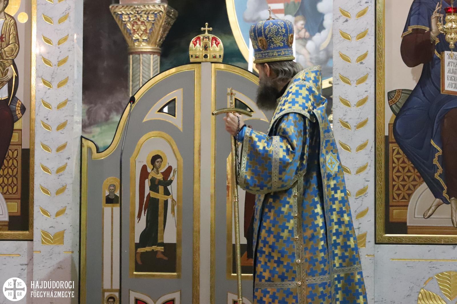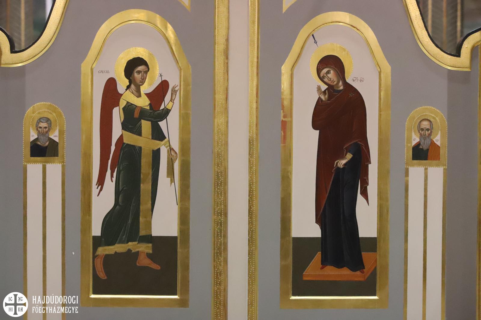 Amikor a Szent Liturgiában elhangzik a felszólítás: Istenfélelemmel, hittel és szeretettel közeledjetek! –akkor kinyílik ez a királyi ajtó, és az egyháza diakónuson vagy a papon keresztül hív, hogy ebben a titokban minket is részesítsen. Tehát Mária az első volt, aki a szíve alatt hordozhatta az Isten Fiát. De őutána minden megkeresztelt ember, mindenki, aki hozzá hasonlóan igent mond Isten akaratára, az hozzá hasonlóan szintén a szívébe fogadhatja az Isten Fiát. Személyesen átélheti a titkot, az örök idők óta elrejtett titkot, ami ma megnyilatkozott és megnyilatkozik minden Szent Liturgiában, minden pillanatban mikor kinyílik a királyi ajtó, hogy Isten egyesül az emberrel – egészített ki magyarázatát a főpásztor.