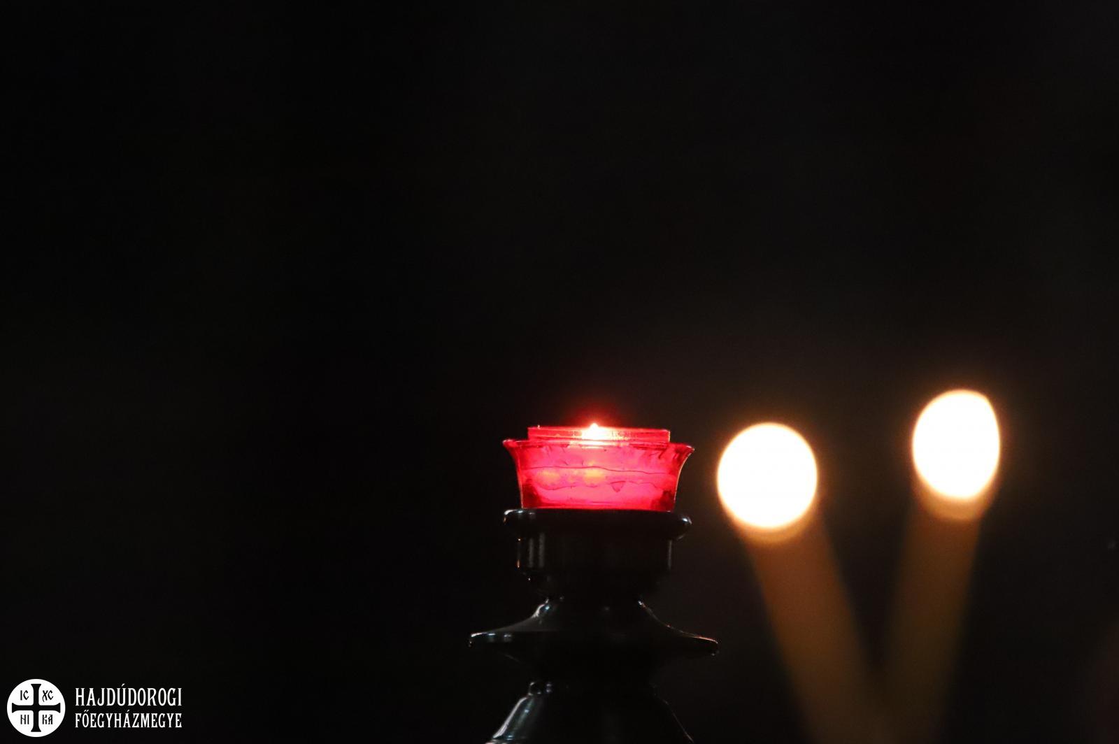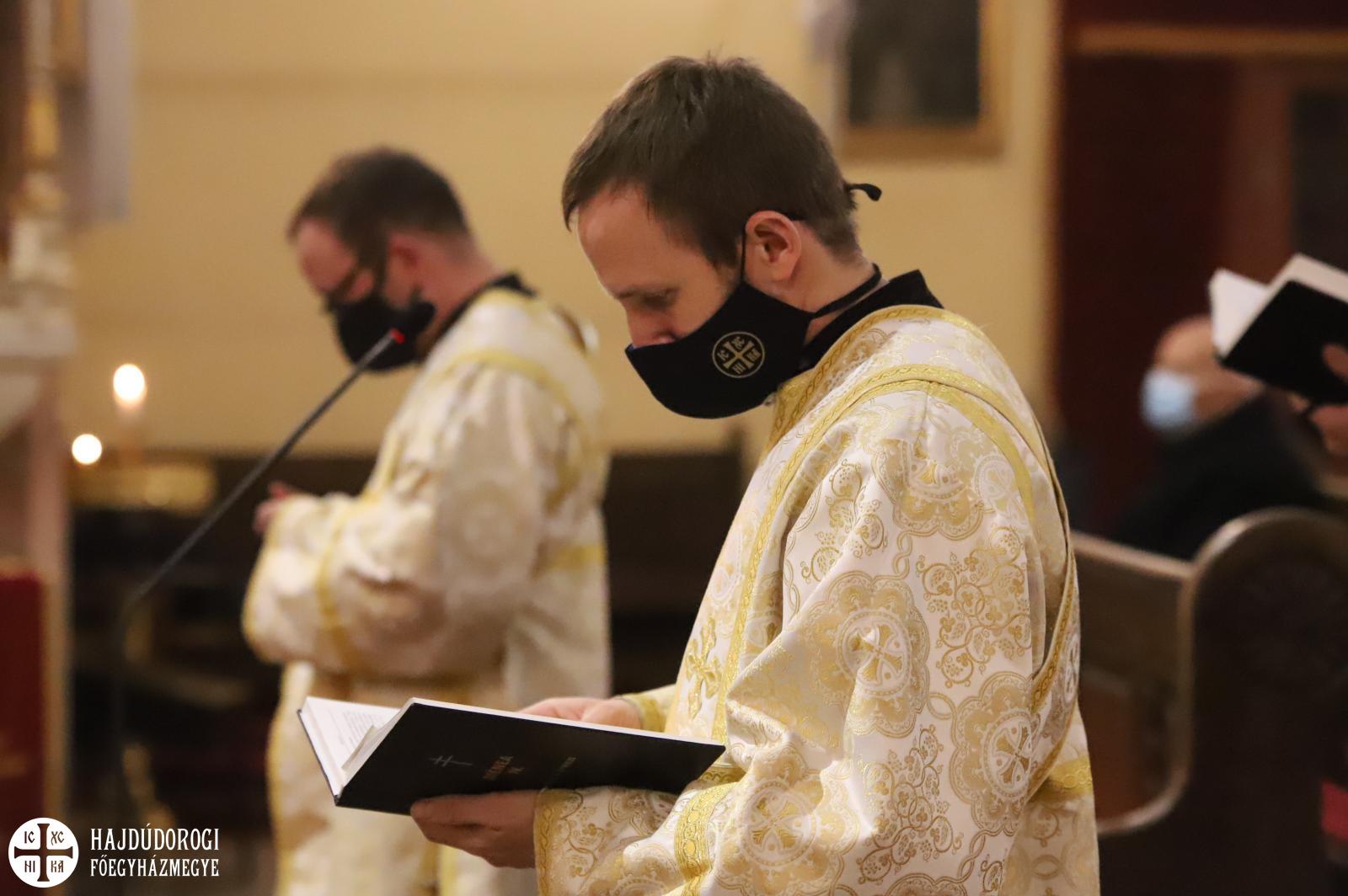 Prédikációját azzal zárta, hogy húsvétkor aztán, amikor minden beteljesedik, amikor az örök titok végleg kinyilvánul, ezt jelzi az egész héten át nyitva maradó királyi ajtó. Mintegy állandósul számunkra, hogy hova hív minket Isten, hogy Krisztus közénk szállása a szűz méhén keresztül mit ajándékozott nekünk.