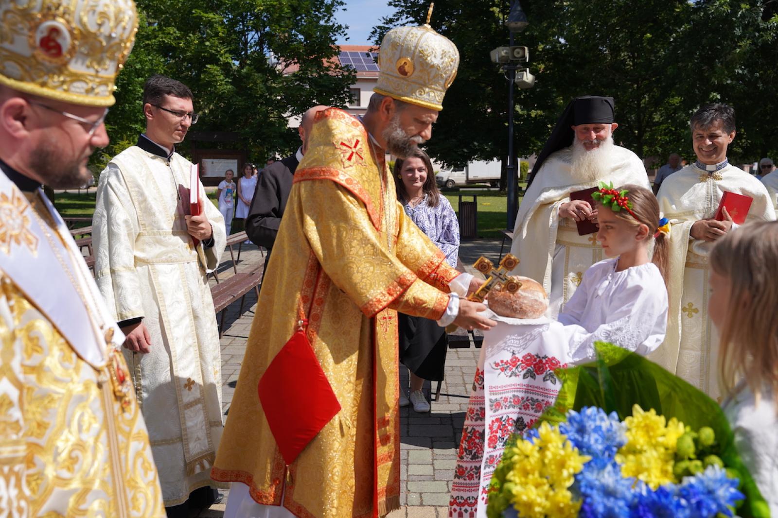 Az éneket a Dhrohobicki székesegyházból érkezett nőikar vezette. A magyar főpásztor rövid köszöntőjét ezekkel a szavakkal kezdte: "Máriapócs mindenkié! Itt otthonra talál minden jószándékú ember vallási és nemzeti hovatartozástól függetlenül." Köszöntötte Sus püspököt is, aki aztán a homíliában arról beszélt, hogy az Istenszülő nem csak könnyezett értünk, hanem most ebben a vészterhes időben le is törli a könnyeinket. Imádkoznunk kell magunkért is, meg az otthonmaradottakért, és fronton harcolókért is. Ez az egymásért végzett imádság változtathatja meg az életünket, egymáshoz való viszonyunkat, hozhat békét a lelkünkbe és a világunkba. A Szent Liturgia végén az ukrán püspök megköszönte a magyar népnek és kiemelten a magyar görögkatolikusoknak azt a sok segítséget, amelyet eddig, és főként a háború kitörése óta nagy áldozatkészséggel feléjük nyújtottak. Válaszában Fülöp atya is megerősítette, hogy ez természetes keresztény kötelességünk, s minden bizonnyal fordított helyzetben az ukrán testvérek is megsegítenék a magyarokat, ha arra adódna helyzet. Ezt kérés formájában meg is erősítette, s arra hivatkozva, hogy az ukrán menekült személyek és családok támaszt és otthont találnak Magyarországon, ehhez hasonlóan kéri, hogy a Kárpátalján és Ukrajna területén élő magyarok is békés és biztonságos körülmények között élhessenek.