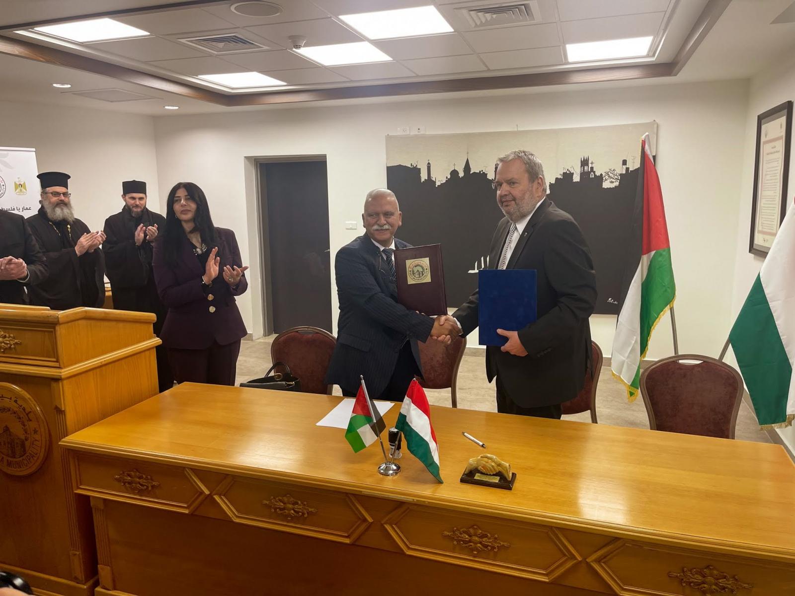 Az ünnepi alkalmat Magyarország Ramallahi Képviseleti Irodája, Rada Csaba nagykövet és dr. Nassar Khamis tiszteletbeli konzul urak hatékony segítségével készítette elő. A Papp Bertalan polgármester, Kiss András vármegyei képviselő és Tamás László önkormányzati képviselő urakból álló máriapócsi delegációt elkísérte Szocska Ábel püspök atya, Mosolygó Péter kegyhelyigazgató valamint Papp Tibor és Seszták István helynök atyák is. Az ünnepélyes aláíráson Nagykövet úr és Tóth Krisztina első beosztott mellett jelen volt még Kovács-Pifka Péter a Hungary Helps program vezérigazgatója. A fogadó város részéről pedig a polgármester és a képviselő urak mellett jelen volt még a palesztin külügyminiszter-helyettes asszony és a volt keresztényügyi miniszter is.