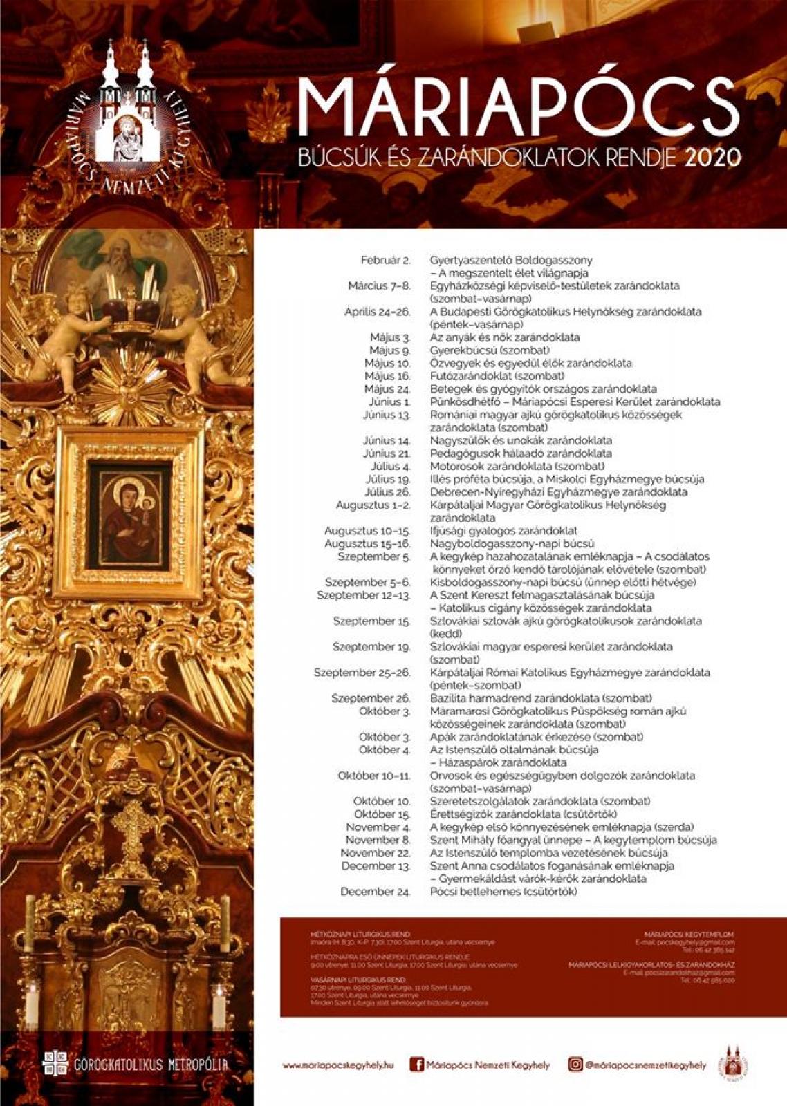 Szeretettel osztjuk meg a 2020-as máriapócsi búcsúrendet.
