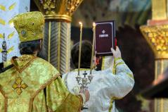 Az evangéliumi részlet így szólt: Így szólt az Úr: „Amikor eljön dicsőségében az Emberfia, és vele a szent angyalok mindnyájan, akkor leül majd fönséges trónjára. Elébe gyűjtik mind a nemzeteket, ő pedig elválasztja őket egymástól, ahogy a pásztor elválasztja a juhokat a bakoktól. A juhokat jobbjára állítja, a bakokat pedig baljára. Akkor így szól a király a jobbján állókhoz: »Jöjjetek, Atyám áldottai, vegyétek birtokba a világ kezdetétől nektek készített országot! Mert éheztem, és ennem adtatok, szomjaztam, és innom adtatok, idegen voltam, és befogadtatok, mezítelen voltam, és felruháztatok, beteg voltam, és meglátogattatok, börtönben voltam, és fölkerestetek.« Erre így válaszolnak neki az igazak: »Uram, mikor láttunk éhezni, hogy enned adtunk volna, vagy szomjazni, hogy innod adtunk volna? Mikor láttunk idegenként, hogy befogadtunk volna, vagy mezítelenül, hogy felruháztunk volna? Mikor láttunk betegen vagy börtönben, hogy meglátogattunk volna?« A király erre így felel nekik: »Bizony mondom nektek, amikor megtettétek ezt e legkisebb testvéreim közül egynek is, nekem tettétek.«