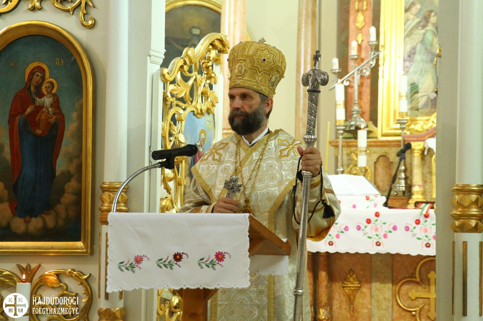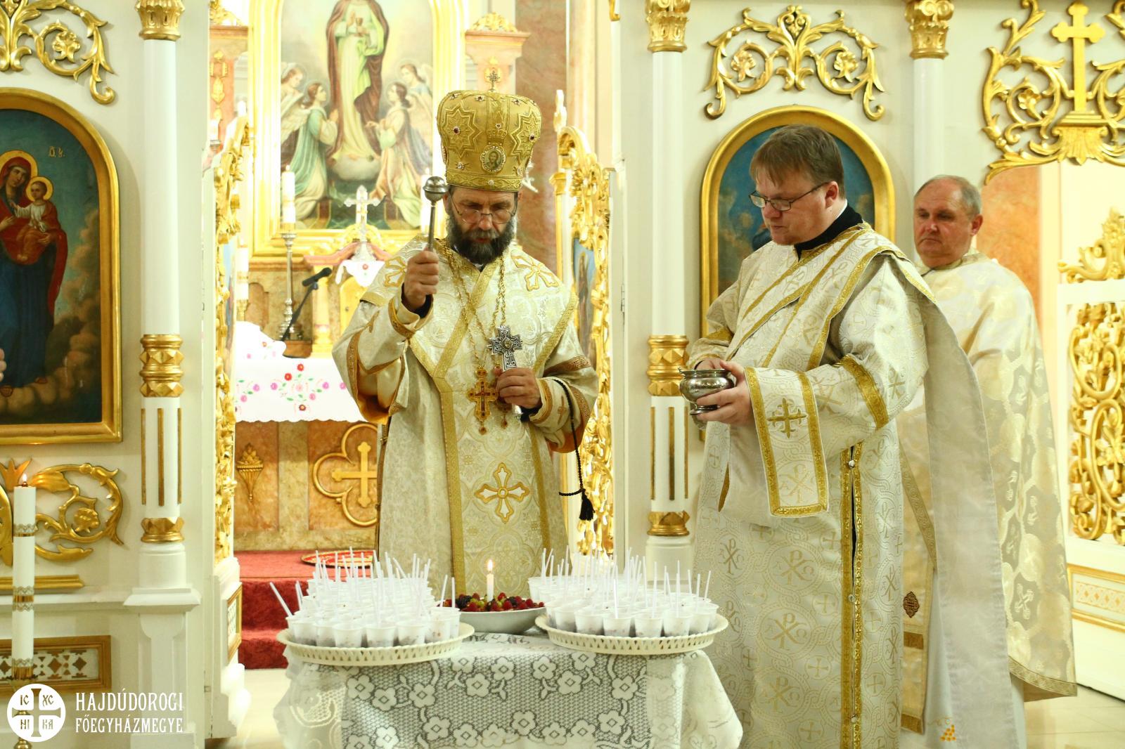A záró Szent Liturgiát Kocsis Fülöp metropolita celebrálta. „Hogyan tudjuk láthatóvá tenni a hitünket?” – tette fel a kérdést. A tetteinken keresztül. De csak akkor, ha ezek a tettek az Istent dicsőítik. Emellett a tekintetünkben…hiszen a szem a lélek tükre. A szemünkkel nem tudunk hazudni. Látszik a tekintetünkben, hogy ez a szem leginkább az Istenre figyel. Ez a tekintet nem az emberek elismerését keresi, hanem az Istent dicsőíti.” Utána kolibát áldott meg, amiből mindenki részesedhetett.