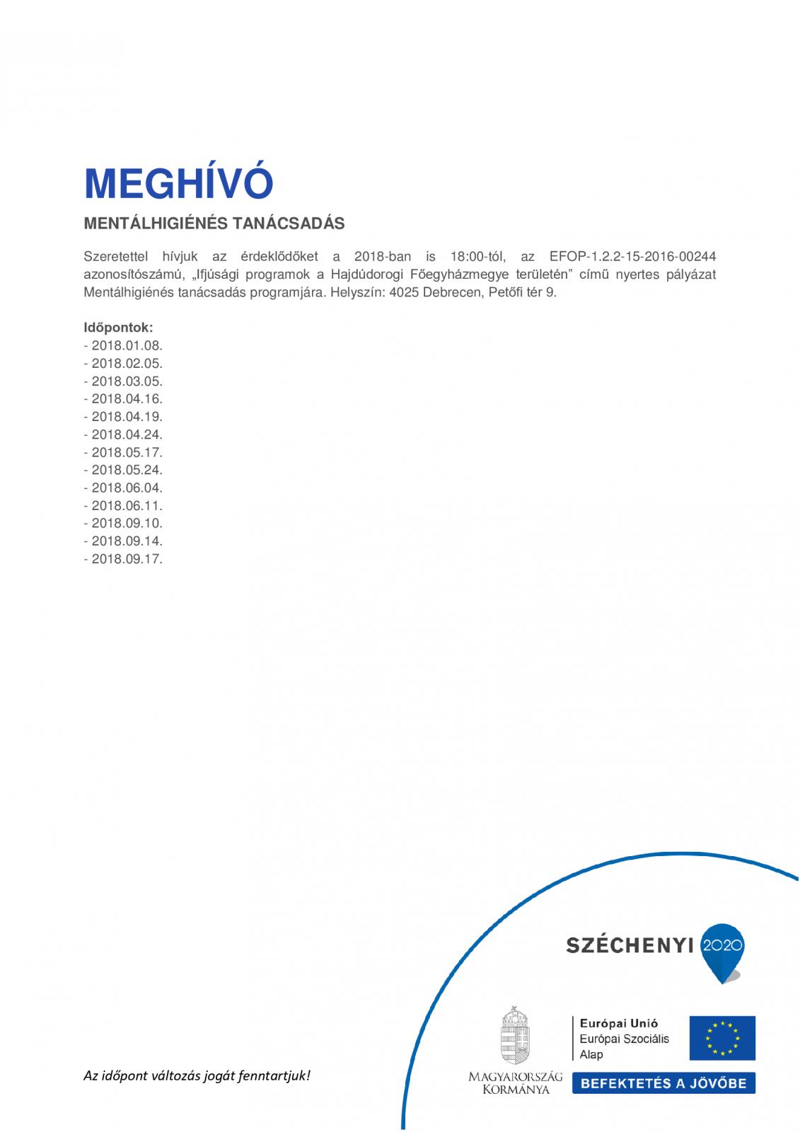 Meghívó mentálhigiénés és személyközpontú tanácsadásra