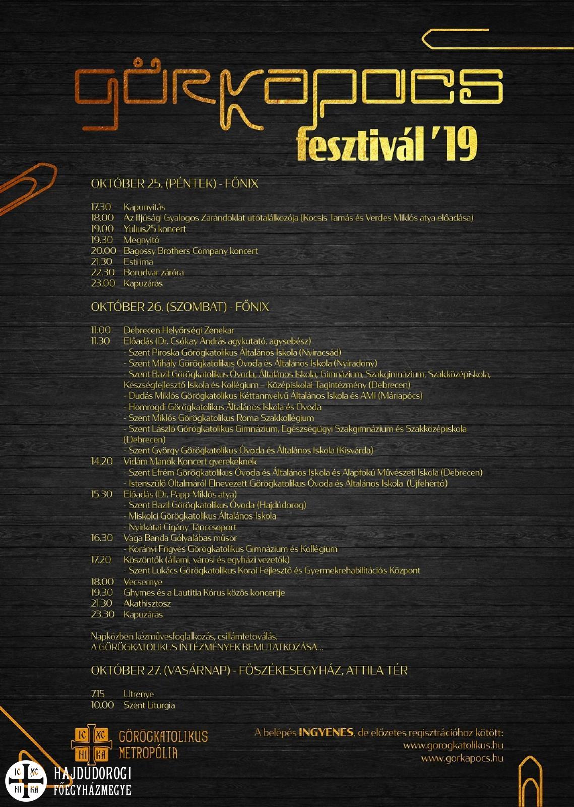 Az esemény alapja természetesen a lelki készület, a csarnokban szombaton a vecsernyét és az akathisztoszt is elimádkozhatjuk, vasárnap pedig a 10 órakor kezdődő Szent Liturgiával (Debrecen, Attila téri Főszékesegyház) zárul a Görkapocs Fesztivál.