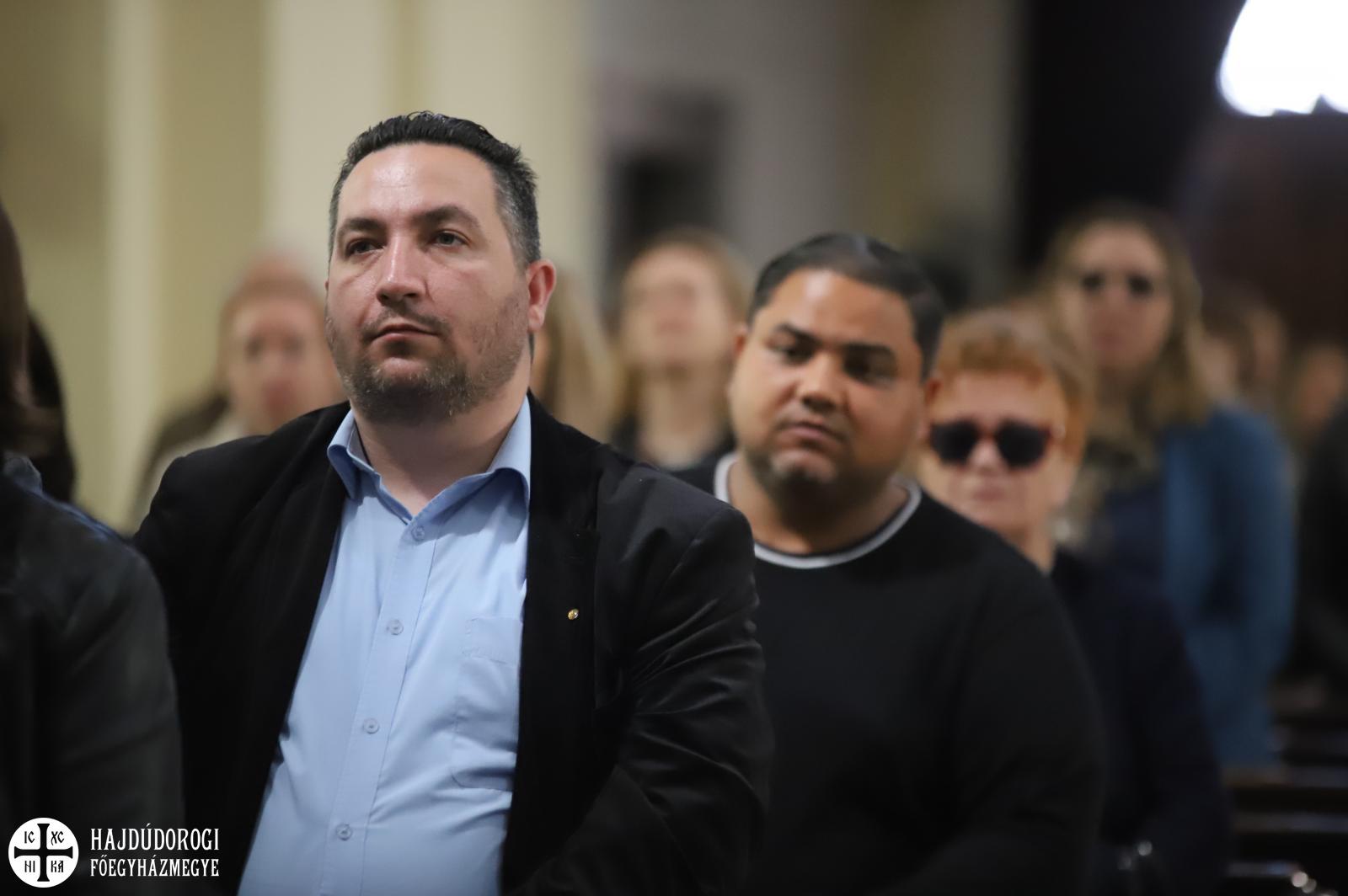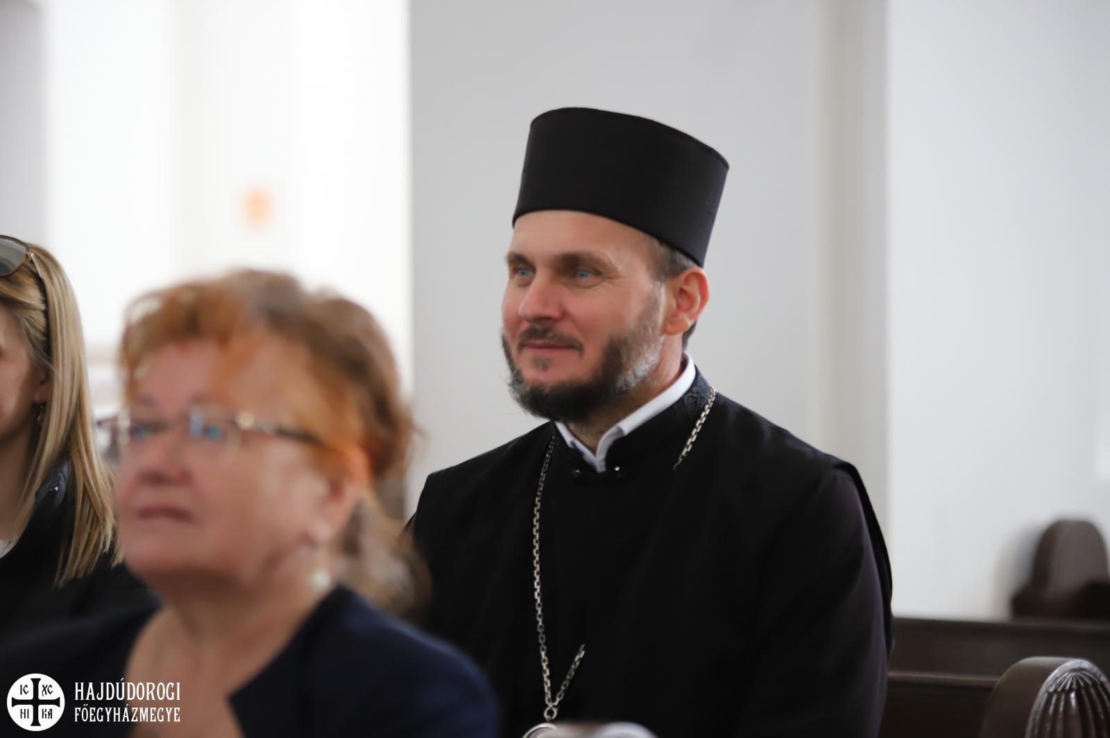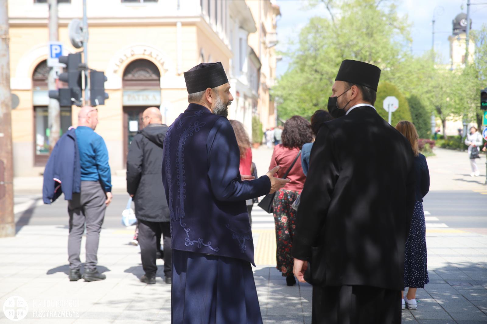 Természetesen az Attila téri Főszékesegyház sem maradhatott ki a látnivalókból, itt közös éneklés után Fülöp metropolita atya elmondta, hogy hamarosan elkezdődik a templom teljes körű felújítása. Nagy öröm számára, hogy a miskolci és nyíregyházi székesegyházak után a debreceni is megszépülhet.