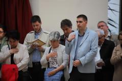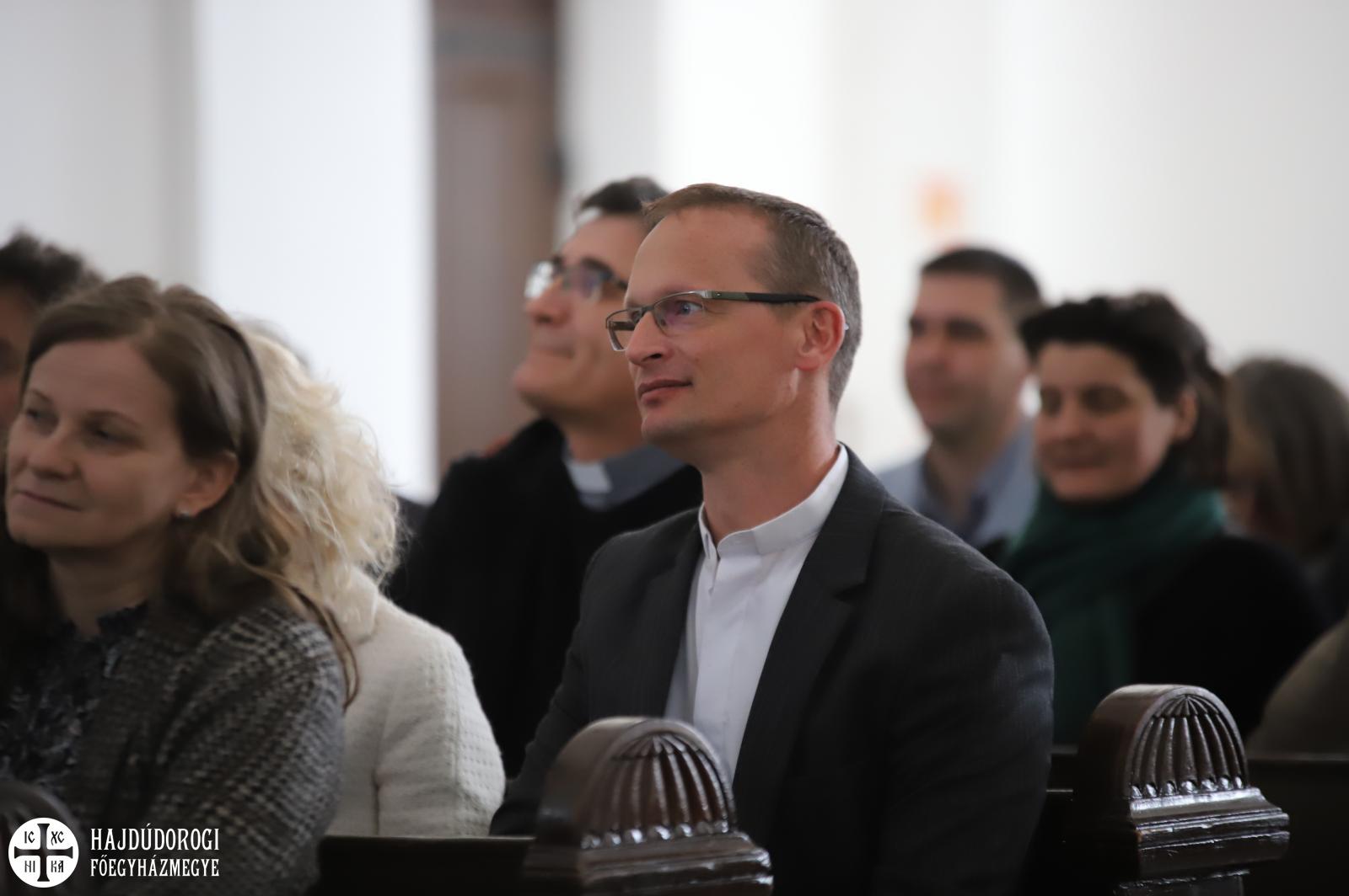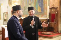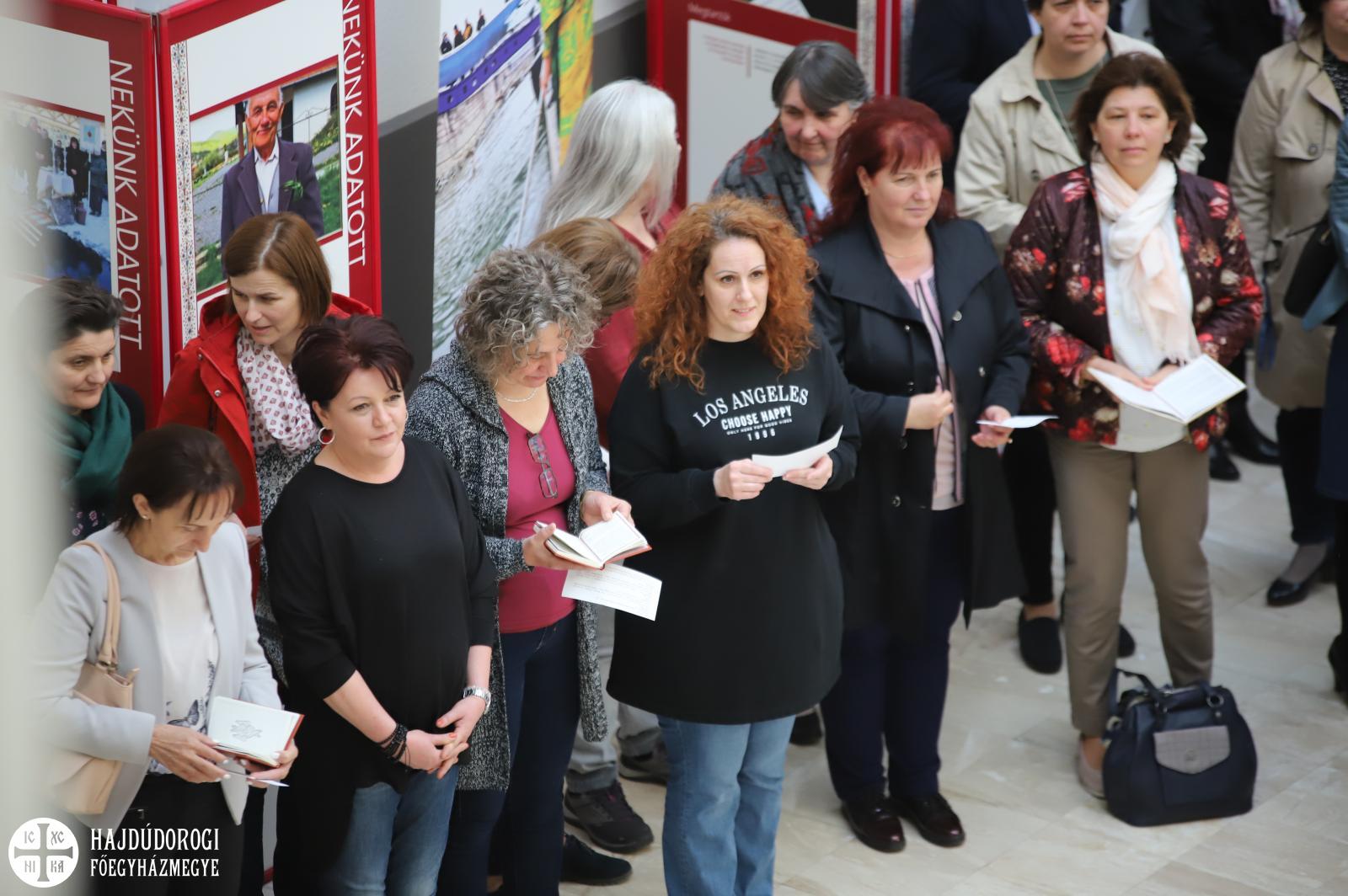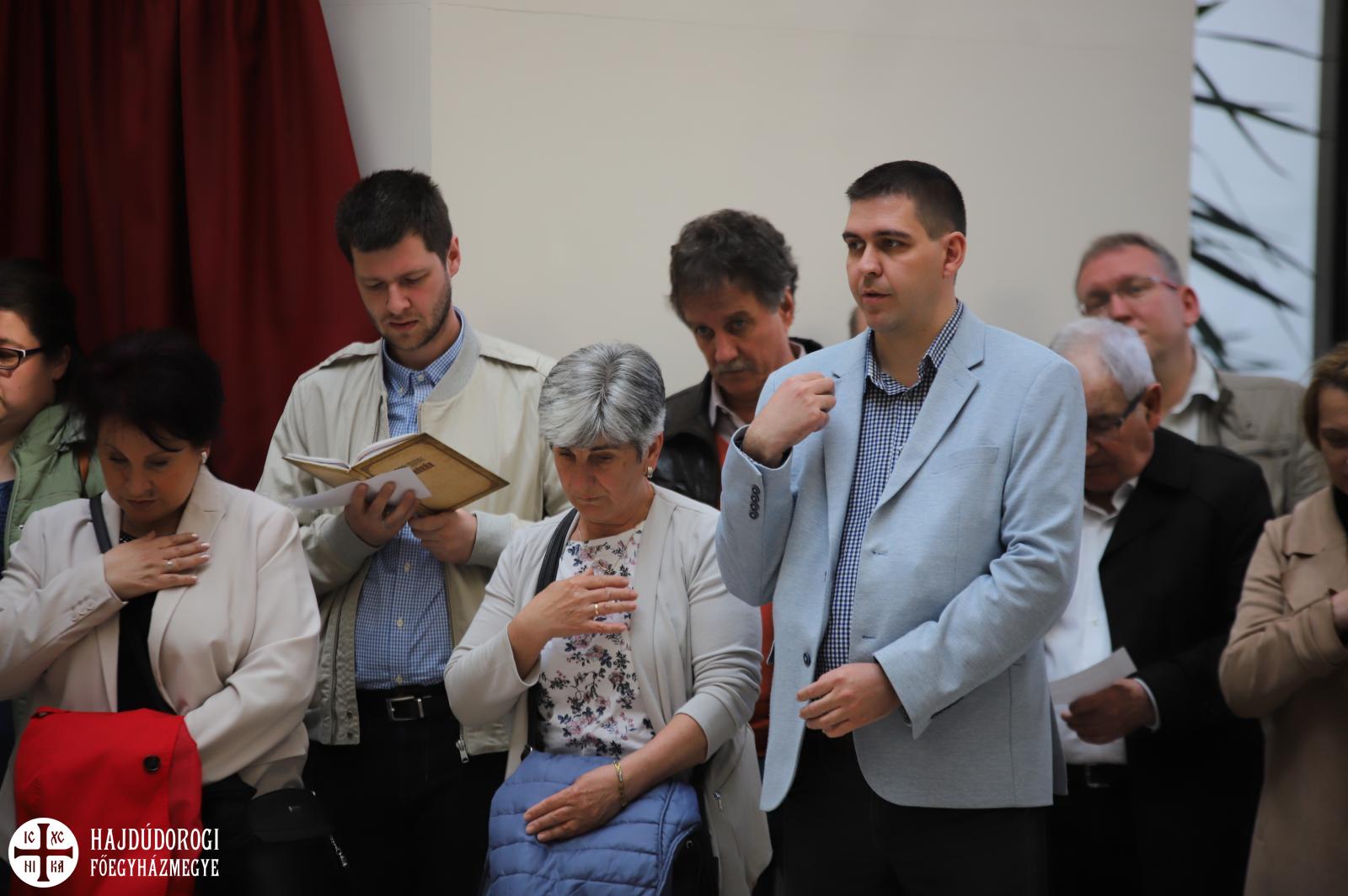 Természetesen az Attila téri Főszékesegyház sem maradhatott ki a látnivalókból, itt közös éneklés után Fülöp metropolita atya elmondta, hogy hamarosan elkezdődik a templom teljes körű felújítása. Nagy öröm számára, hogy a miskolci és nyíregyházi székesegyházak után a debreceni is megszépülhet.