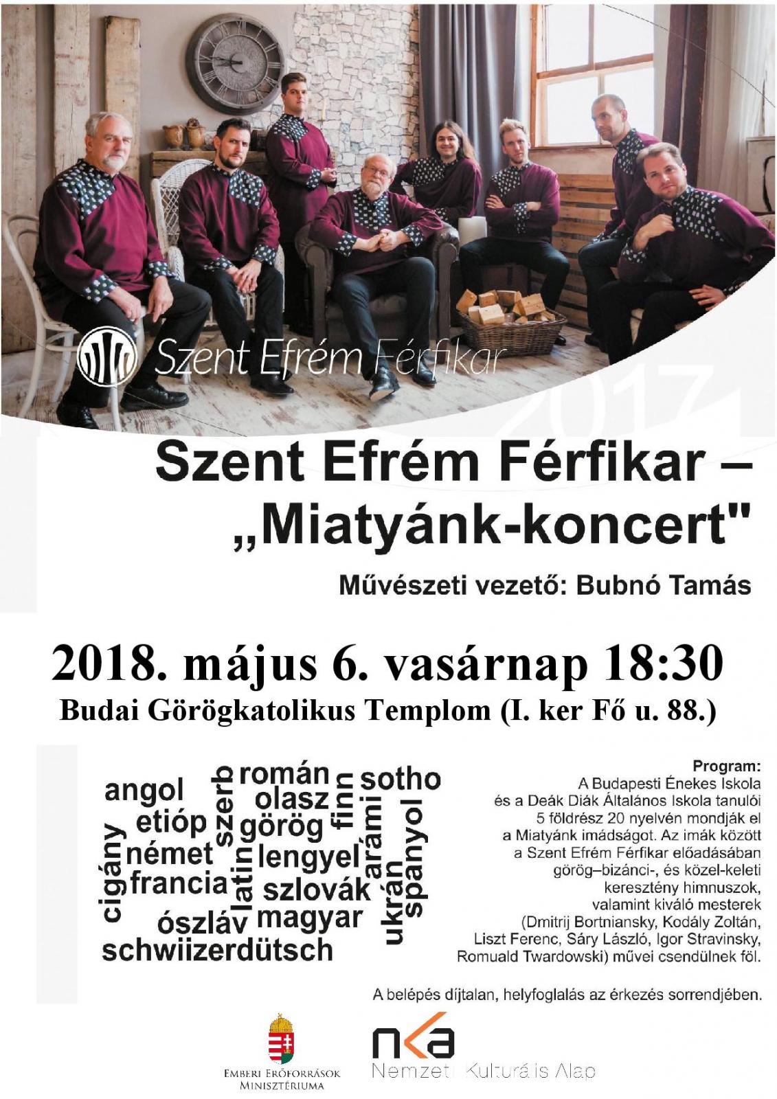 A Szent Efrém férfikar estjének központi témája a Miatyánk, mely görög-bizánci és közel-keleti himnuszokban, Purcell, Schubert, Kodály, Liszt etc. műviben csendül fel, az ifjú nemzedék pedig 5 földrész 20 nyelvén imádkozza el az Úr imáját, elválasztva, s egyben összekötve a megszólaló harmóniákat.