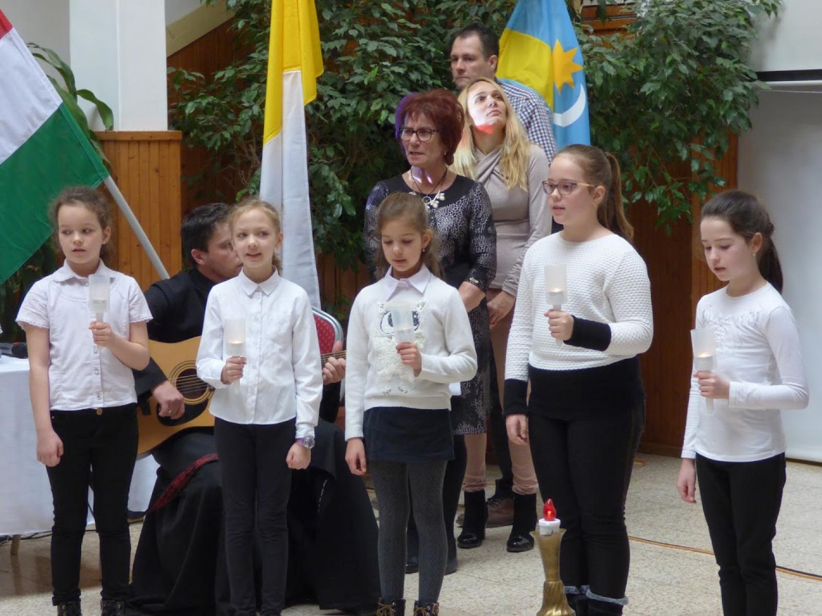 Az iskolába érkező szentszéki nagykövetet Orosz Atanáz püspök mellett Ternyák Csaba érsek, Bánné dr. Gál Boglárka, a megyei közgyűlés elnöke, Edelény város vezetésének képviselői és természetesen egyházmegyénk papsága és intézményvezetői is fogadták, az edelényi iskola énekkara és a rakacaszendi tagiskola tanulói kis műsorral köszöntötték.