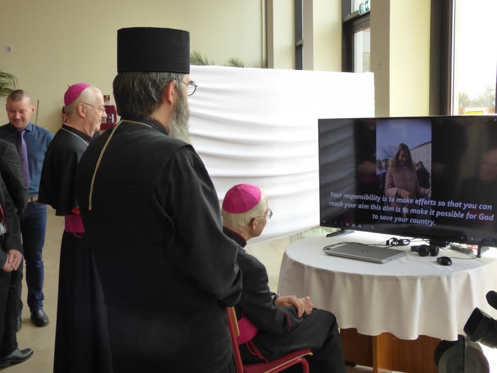 A hivatalos látogatás a Szent János Görögkatolikus Gimnázium, Szakgimnáziumban folytatódott. A középiskola közössége egy héten át látható kiállítással tiszteleg Szent II. János Pál pápa előtt, születésének századik évfordulóján. Edelény városát a szentté avatott egyházfő oltalmába ajánlották tavaly augusztusban. A kiállítás kapcsán Michael August Blume munkásságának azon időszakáról mesélt a fiataloknak, amikor János Pál pápa mellett tevékenykedett. Majd a gyerekek nagy lelkesedéssel mutatták meg a pápai nagykövetnek a kiállítás interaktív részét is.