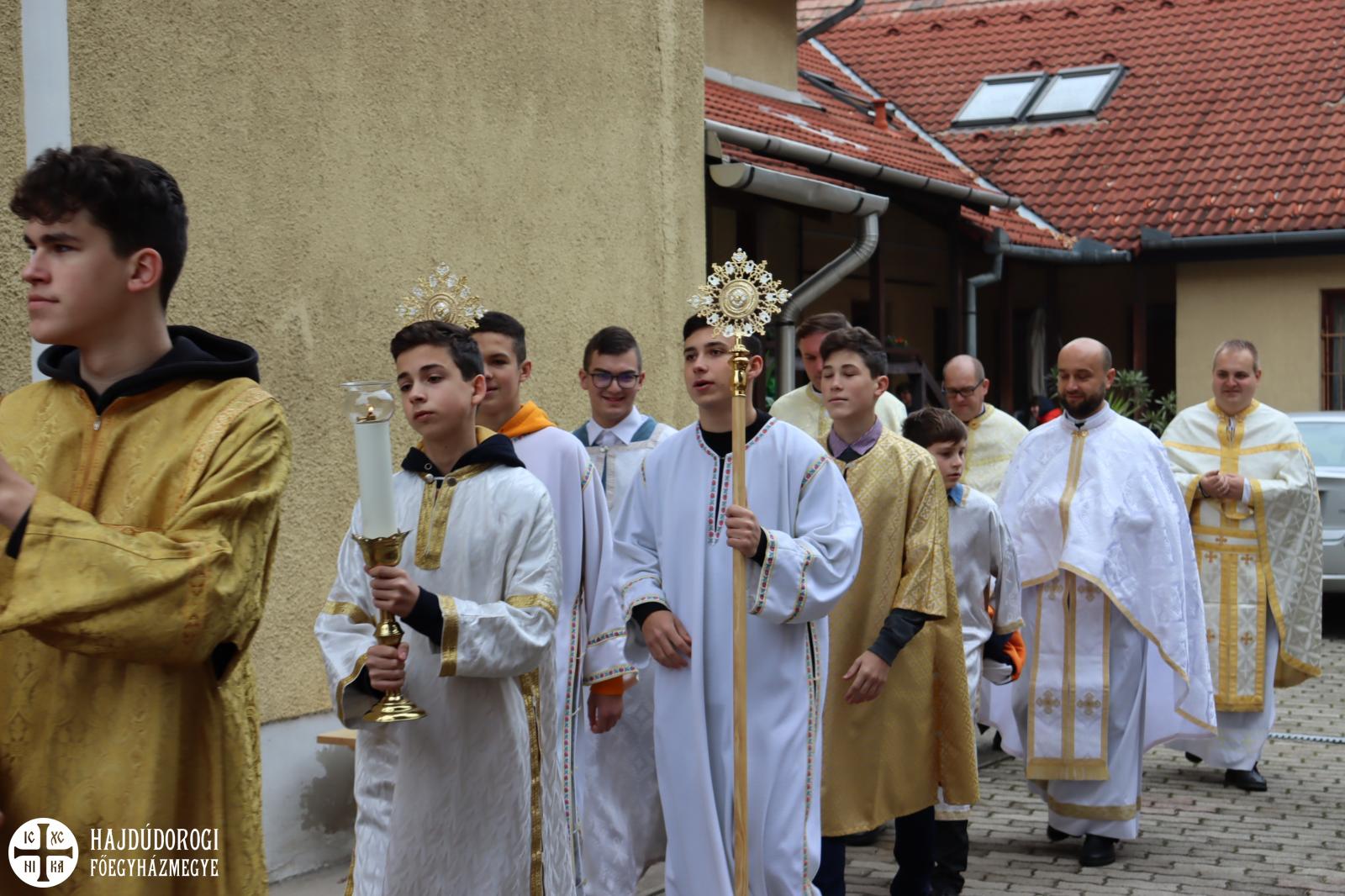 Jézus azt mondja programbeszédszerű főpapi beszédében, melyben valamilyen szinten elbúcsúzik tanítványaitól, hogy arról ismerjenek meg titeket, hogy szeretitek egymást. Ugyanezt mondja Szent Pál is: viseljétek el egymást szeretetben. „A szeretet lehet az igazi kapocs ma is ebben a kispesti görögkatolikus közösségben is!” - emlékeztette az egybegyűlteket István atya. Bármennyire is nem könnyű olykor Jézus tanítványának lenni, elmondhatjuk magunkról, hogy van egy olyan hivatásunk, ami összeköt minket, amelyhez méltó módon szeretnénk élni, hogy az Istent, Jézust kövessük, aki életünkben szolgálatra, engedelmességre, és olykor bizony radikalizmusra hív.