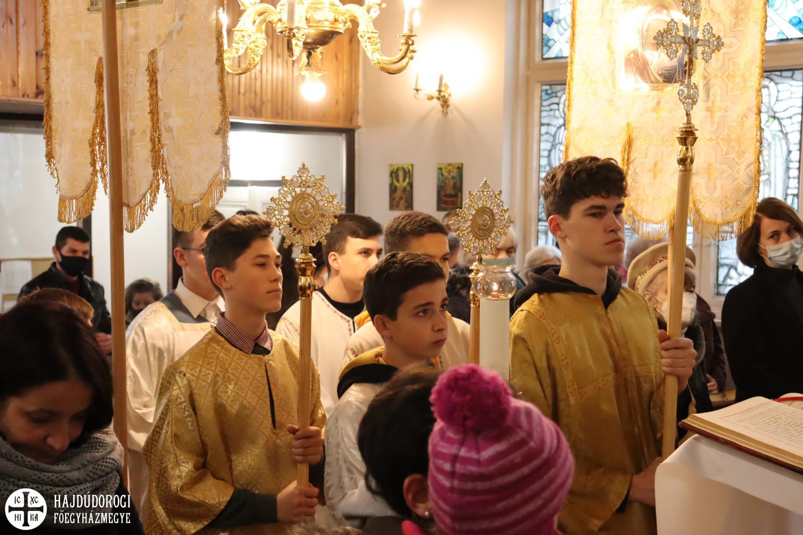 A méltóképpen megünnepelt Liturgia végén József parókus atya köszöntötte a híveket, az ide látogató bazilita Izsák, Mihály és Andrej atyákat, és unokatetvéreként is köszönetet mondott dr. SesztákIstván atyának, akit bokros teendői végre nem akadályoztak meg abban, hogy Kispestre látogasson.