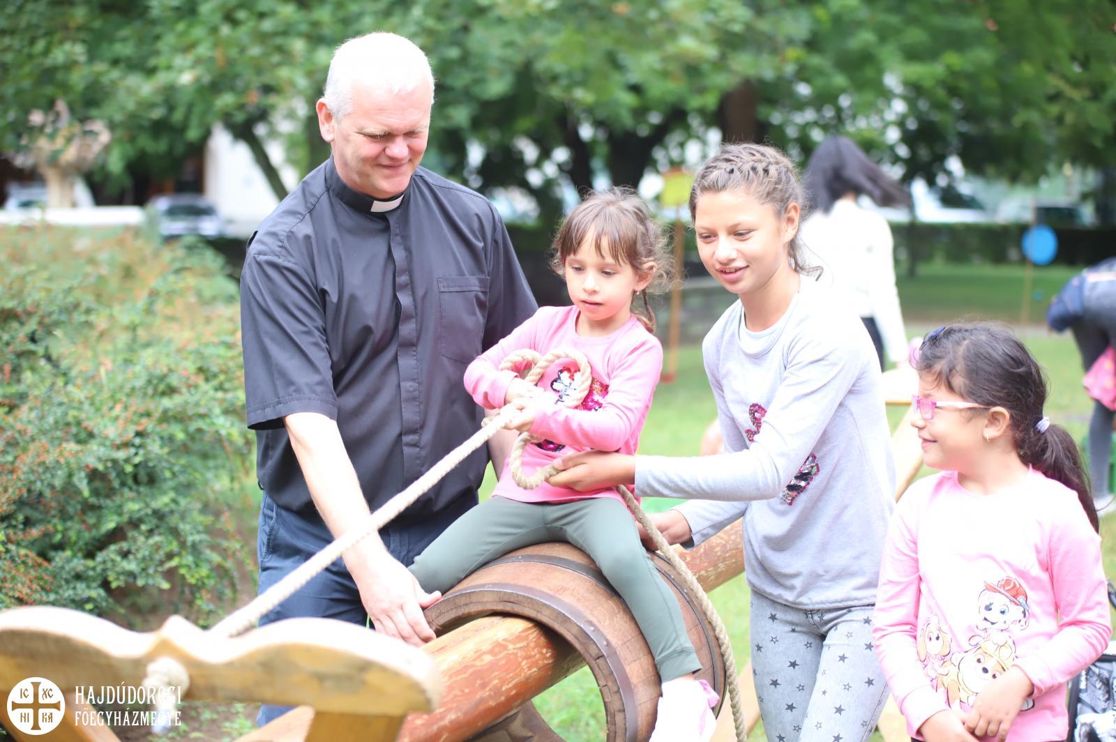 Idén a Debreceni és Nyírségi Görögkatolikus Gyermekvédelmi Központ, a Hajdúsági Görögkatolikus Gyermekvédelmi Központ, a Szent Miklós Gyermekvédelmi Intézmény és a Szent Zotikosz Gyermekvédelmi Intézmény lakói és gondozottjai vették birtokba a Kegytemplom előtti teret.
