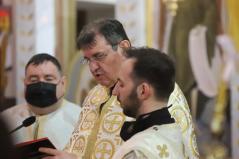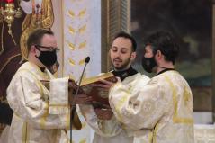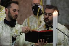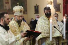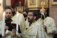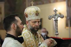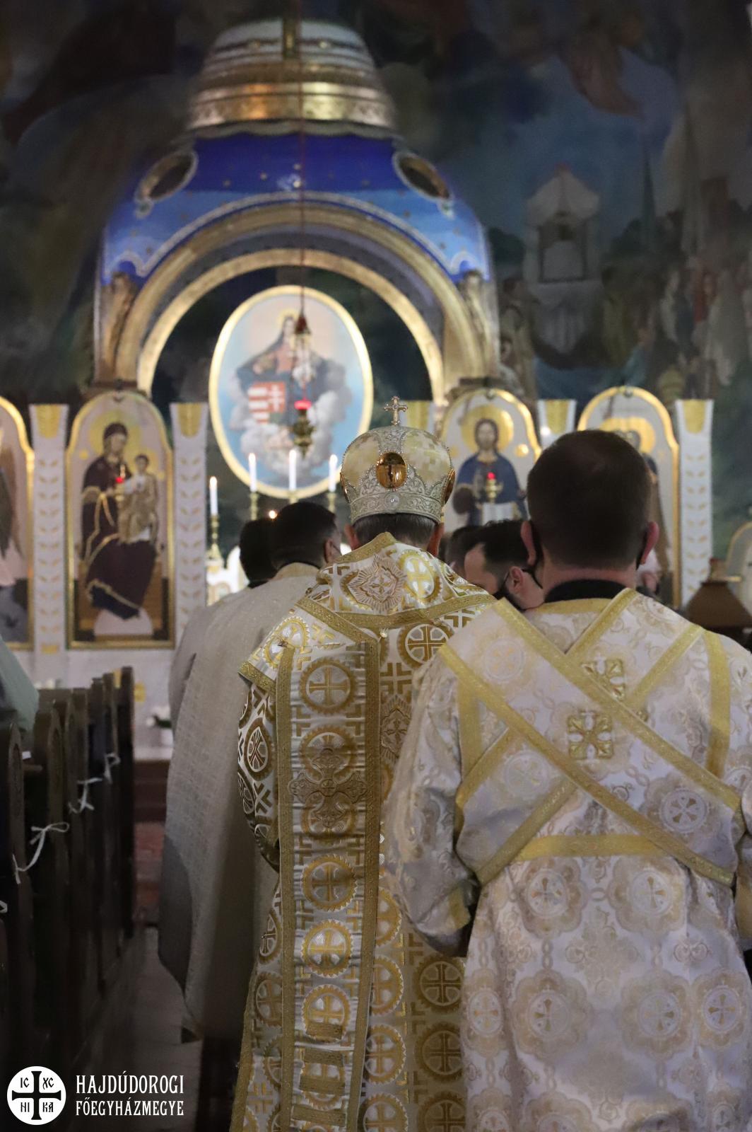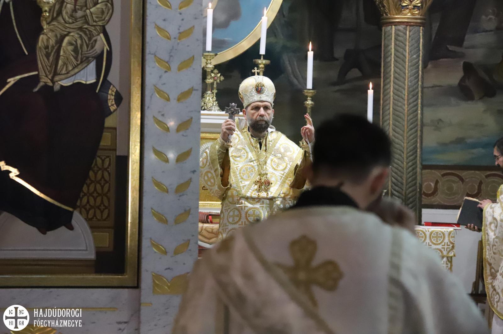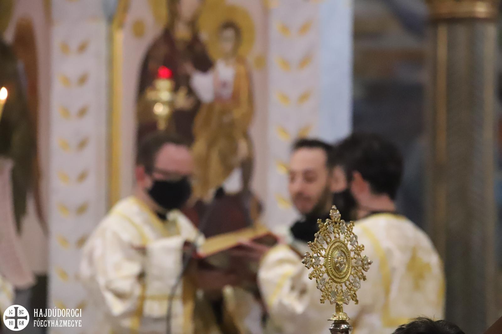 Szent György vértanú napján az Egyházunk ráirányítja a figyelmet arra, hogy rabok vagyunk, de nem mindegy, hogy mit jelent ez a rabság számunkra – kezdte prédikációját a főpásztor. Az ezen a napon elhangzó Apostolok Cselekedeteinek története meglepő módon nem annyira a vértanúságról szól, hanem valami egészen másról. Éppen csak megemlíti a történet a leírás elején, hogy János testvérét Jakabot Heródes kivégeztette. Jakab volt Jeruzsálem első püspöke, az ő nevéhez fűződik a Jakab-liturgia. Látva, hogy ezzel megnyeri a zsidók tetszését, a király Pétert is bebörtönöztette. A történet azonban hosszabban Péter angyal általi megszabadulásának az eseményeit mondja el. Péter első útja ahhoz a közösséghez vezetett, amelyik folyamatosan imádkozott kiszabadulásáért.
