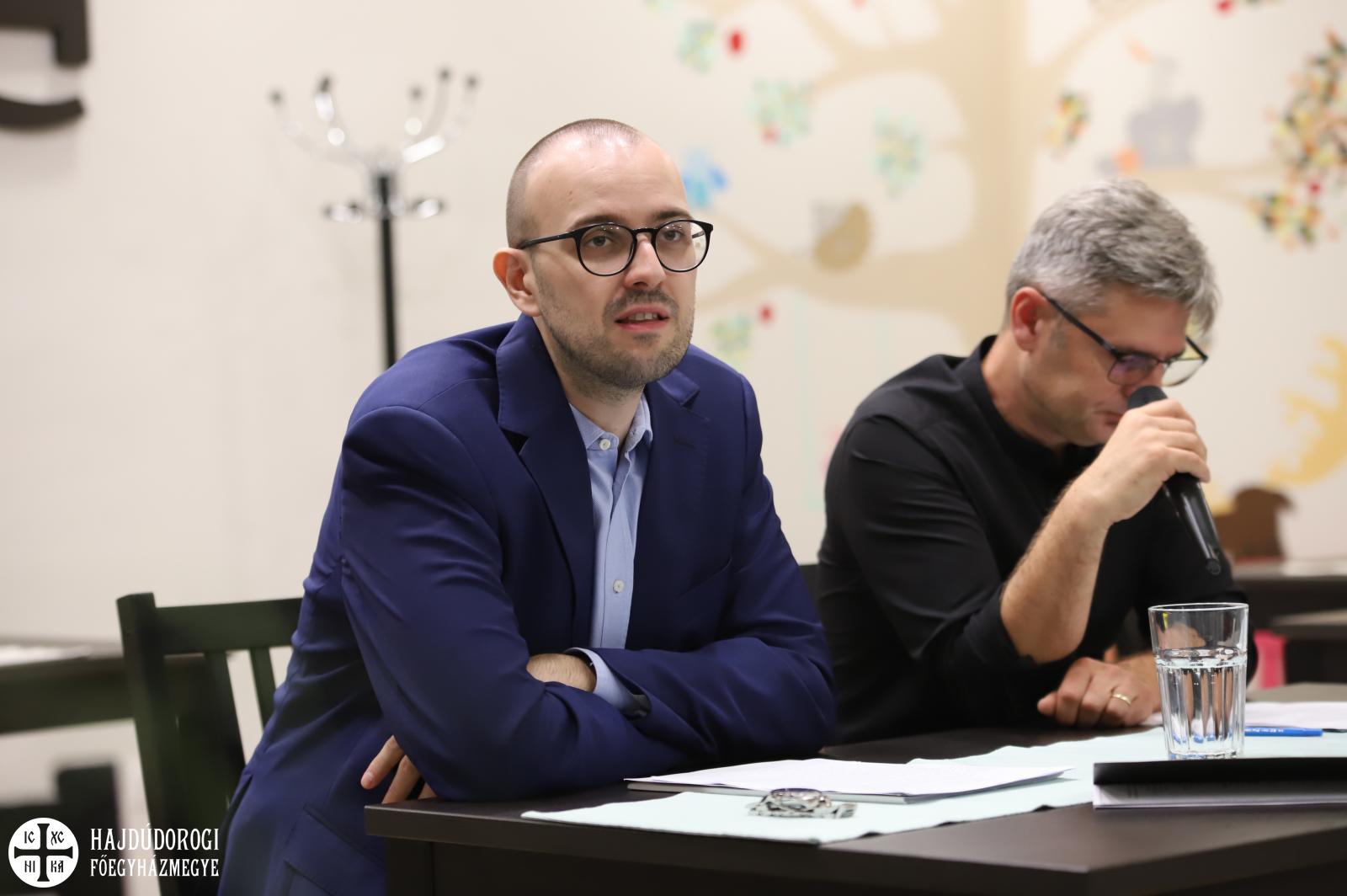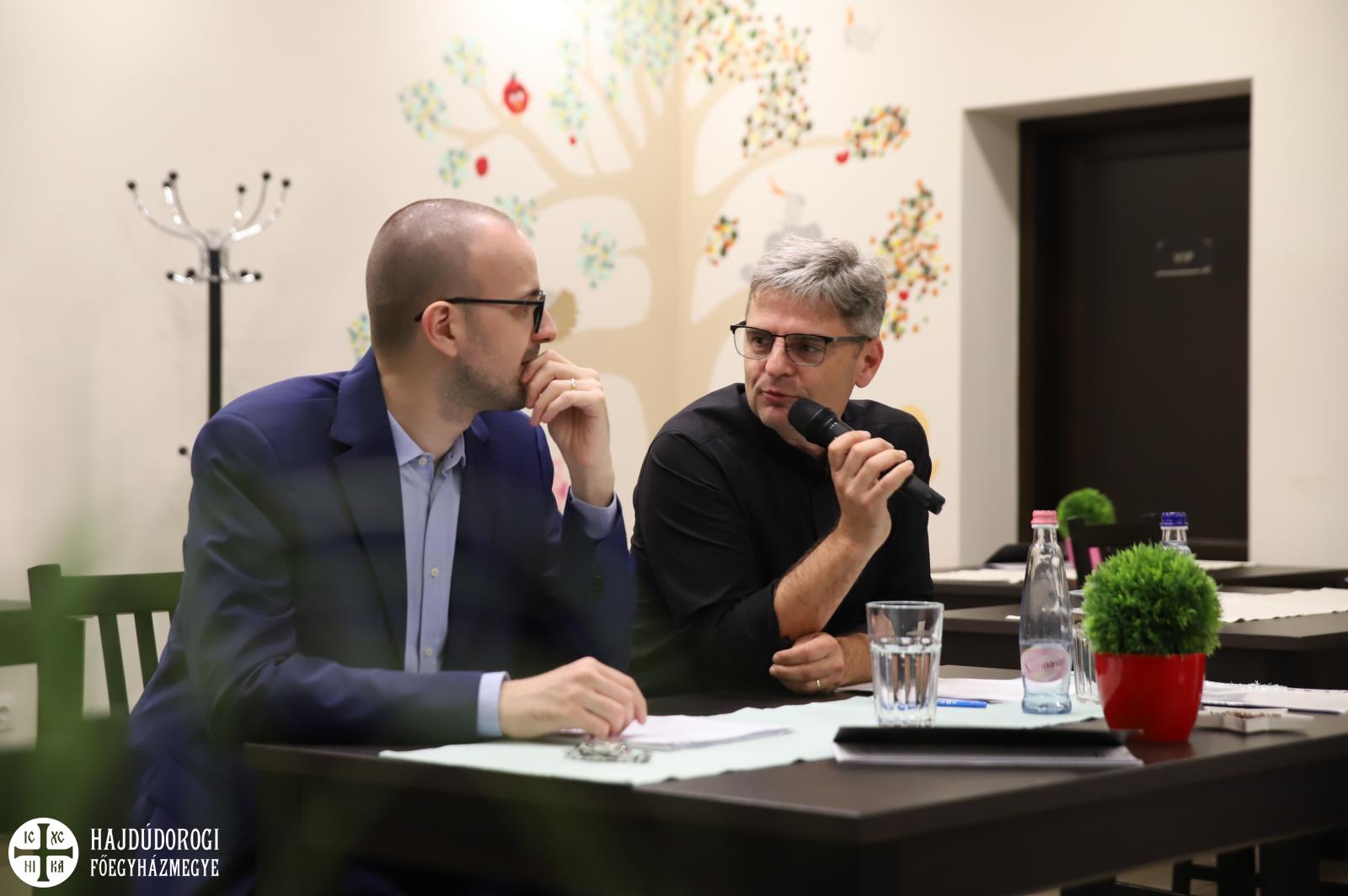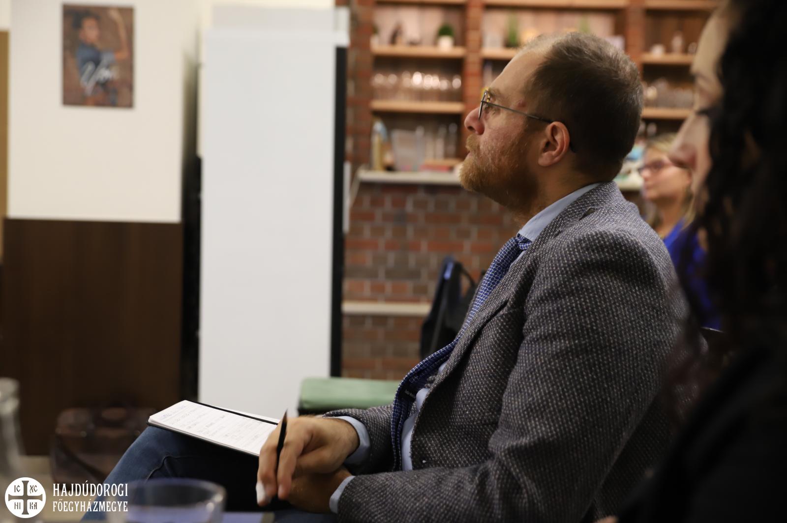 Október közepén Vito Limone, az ókeresztény irodalom és a filozófia professzora volt a vendégünk, aki Milánóból érkezett hozzánk (Università Vita-Salute San Raffaele). Érdekes témát hozott magával: korunk embere gyakran idegennek tartja az első századok keresztény gondolkodóinak a tanítását. Vito Limone az előadásában nézőpontot váltott és az aktuális problémák megoldására válaszolt az egyházatyák útmutatásával. Sőt, rámutatott azokra az értékekre is, amelyek miatt a kereszténység üzenete ma is forradalmi. Mindezt egy baráti beszélgetés keretében tette, ahol a résztvevők bátran kérdezhettek. Az olasz nyelvű előadást Gyurkovics Miklós atya fordította.
