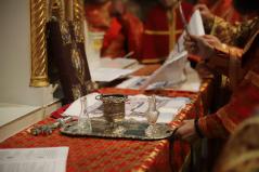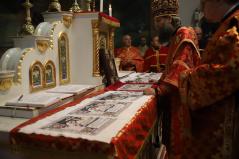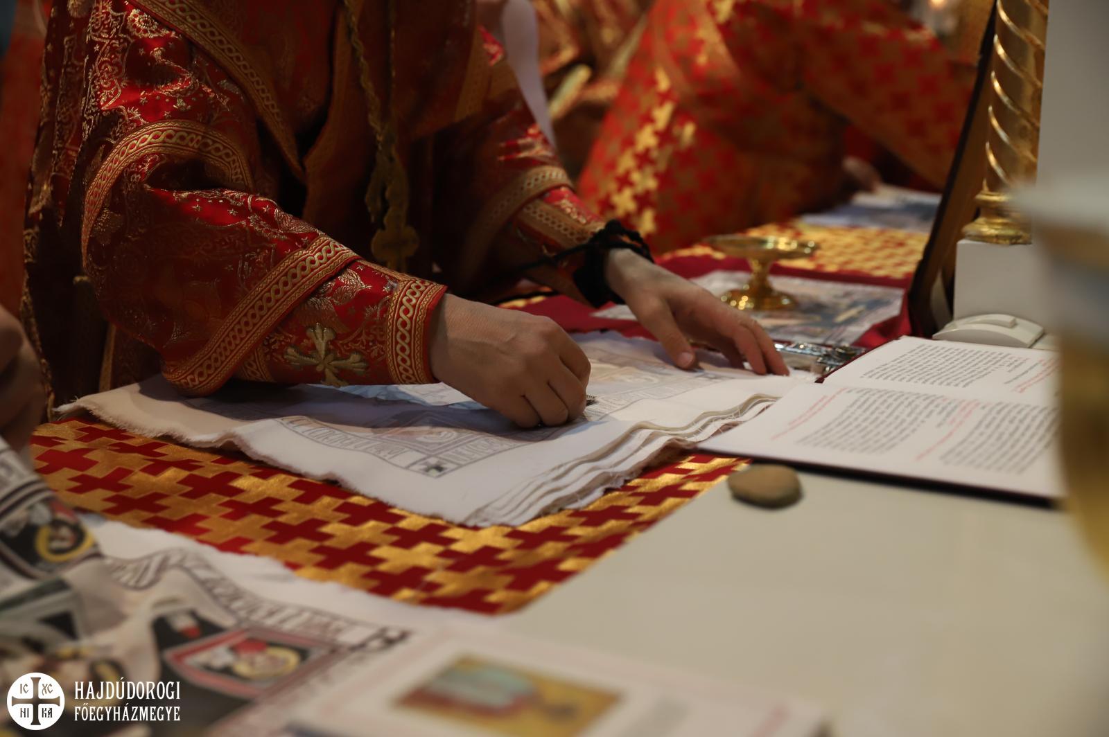 A szertartás egyik különleges pillanata volt az antimenzion vagyis az ereklyekendő megszentelése. Ez tulajdonképpen egy terítő, amelyen Krisztus sírbatételének ábrázolása látható. Az antimenzion belsejébe egy szent ereklyéjét szokták belevarrni, rendszerint testének egy darabkáját, ami azt jelképezi, hogy az Egyház a mártírok vérére és Isten szent embereinek életére épül. E szokás korai egyházi gyakorlatból ered, amikor a keresztények azok sírjánál gyűltek össze és ünnepelték az Eucharisztiát, akik keresztény hitükért éltek és haltak meg.