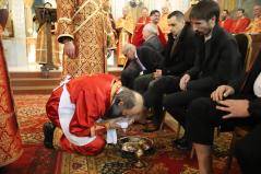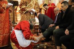 A Liturgia a lábmosás szertartásával ért véget, ami felidézte, miként mosta meg Jézus tanítványai lábát a Titkos vacsora estéjén, felhívva ezzel az apostolok figyelmét a szolgálat fontosságára. A rítus lényegét fogalmazza meg az utolsó imádság: „Te, Uralkodónk, jöjj most méltatlan szolgáid közé, akik példádat követik; mosd le rólunk lelkünk minden szennyét és tisztátalanságát, hogy megtisztulva a bűneink folytán ránk tapadt portól, s a szeretet törlőjével egymást megtörölve kedvedben járhassunk életünk minden napján.”