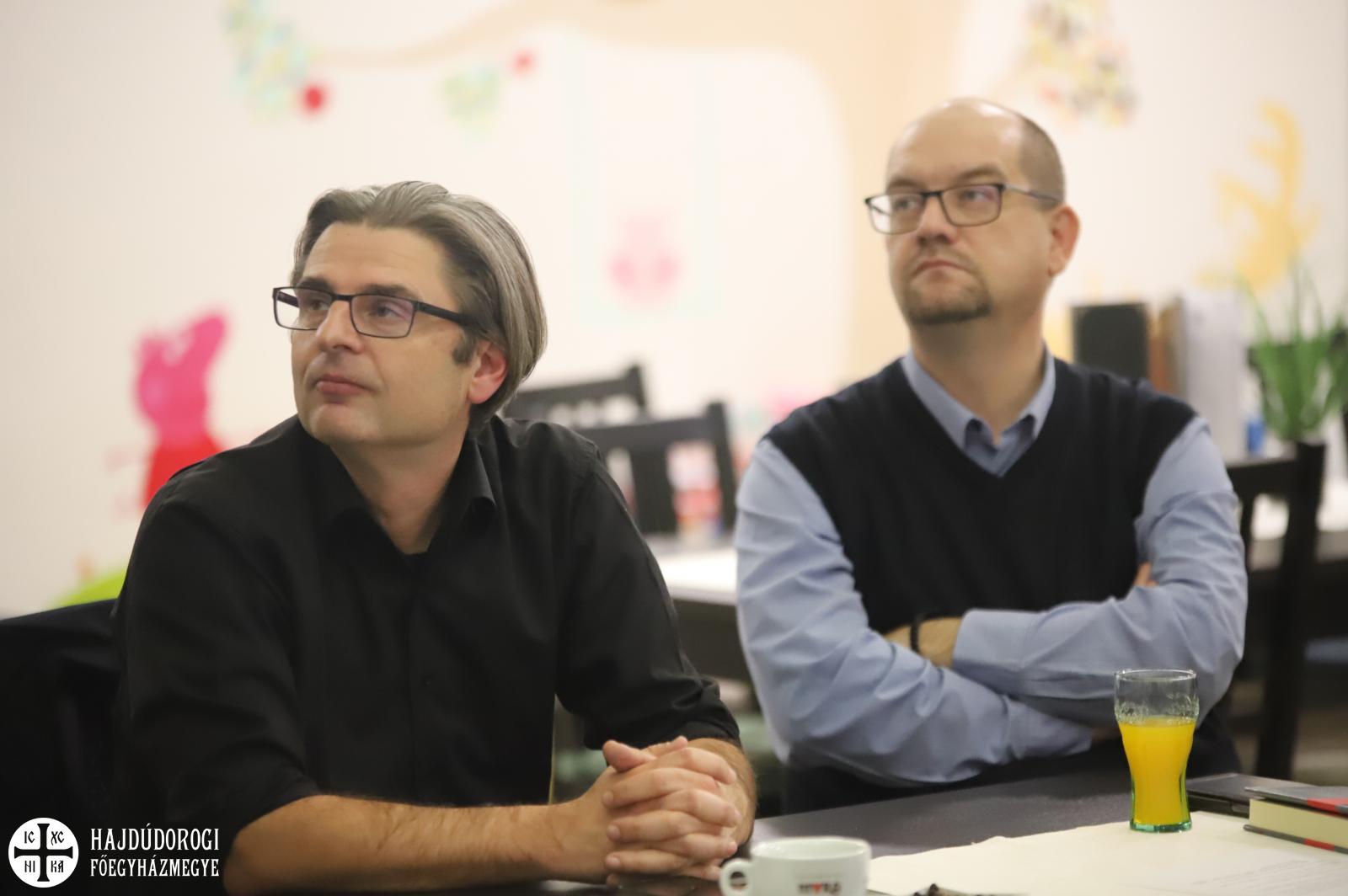 Majd dr. Seszták István főhelynök atya vette át a szót, aki úgy véli, amikor teológiáról beszélünk, akkor mindig nagyon feszesek és merevek vagyunk, jó lenne, ha ezt a „bár” miliője oldaná. Ha úgy tetszik: ne féljünk teológiát művelni, ne féljünk beszélni az Istenről!