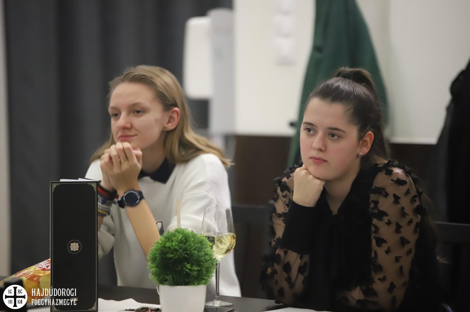 Ezek után szólította meg a forró teáját, kávéját, finom süteményét fogyasztó hallgatóságot Gyurkovics Miklós atya, a Szent Atanáz Görögkatolikus Hittudományi Főiskola rektor-helyettese, aki a karácsonyi üdvözlőlapok főbb üzeneteit, mint család, boldogság, gazdagság a Jóisten irányából közelítette meg.