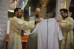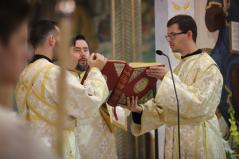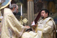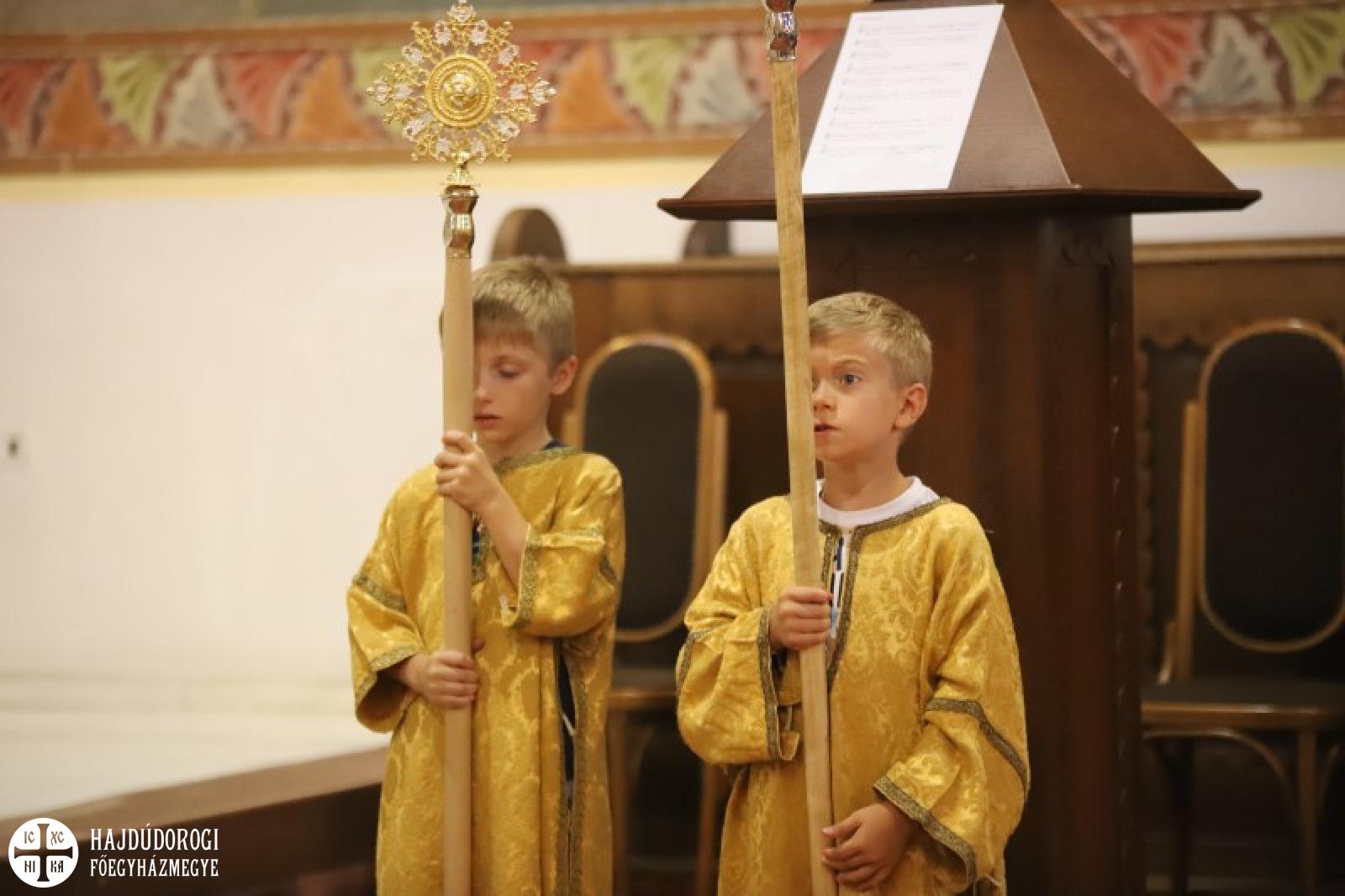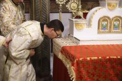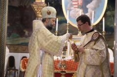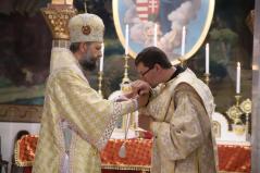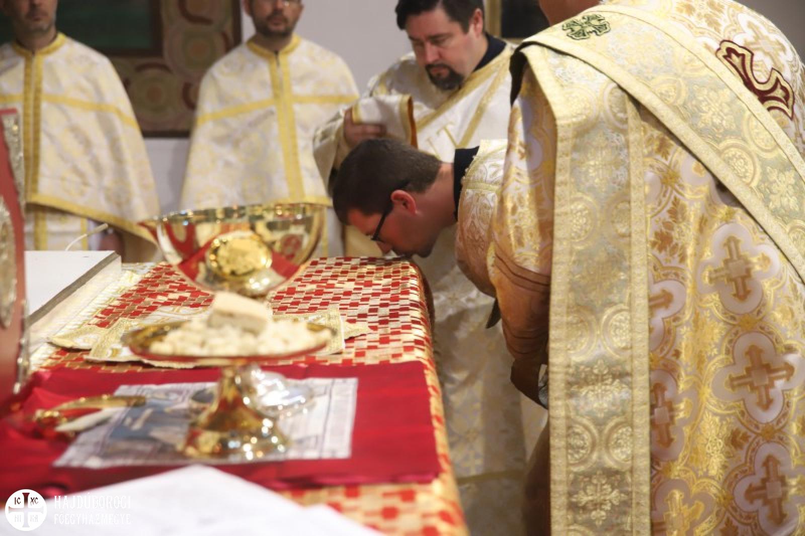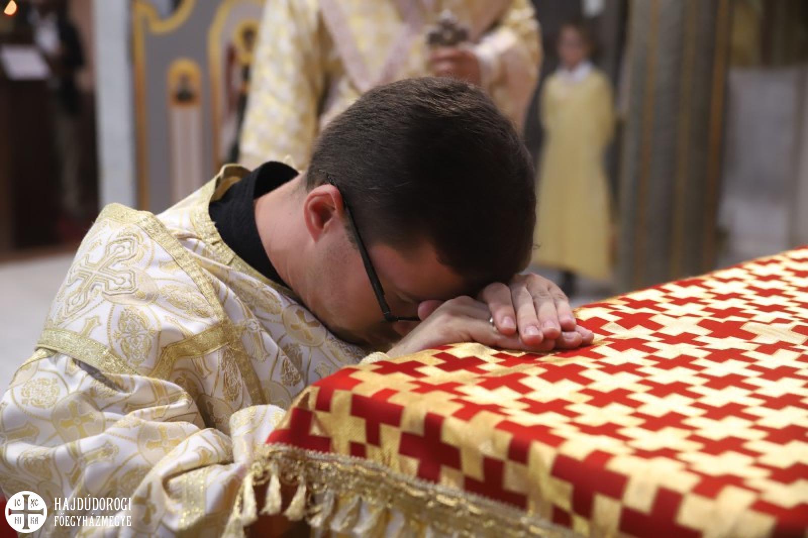Ezen a fényes ünnepen diakónust szentelünk. Baranyi Károly testvérünk hosszú útvesztőkön át kereste az útját, amíg rátalált erre a krisztusi útra: szolgálni az embereket. Papsága előtt egy éven át diakónusként fog szolgálni. Imádkozzunk Károly testvérünkért, hogy a szolgálat homályosságán keresztül fedezze föl ő is ezt az isteni fényt. Imádkozzunk tehát érte, hogy szálljon le reá a legszentebb Lélek kegyelme, hogy szolgálata során a Tábor hegyihez hasonló élményt éljen át. Most ugyanis közel kerül a szentélyhez és egész életét megpecsételi, hogy az Úrszínváltozás ünnepén lép be a papi rendbe. Sugározza hát az ő tekintete is az Istennek ezt a közelségét! Kérjük, hogy az ő szolgálatán keresztül minél több ember megértse, hogy életünk sötétségei nem tudják elhomályosítani ezt az isteni fényt.” – zárta szavait Kocsis Fülöp metropolita.