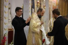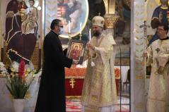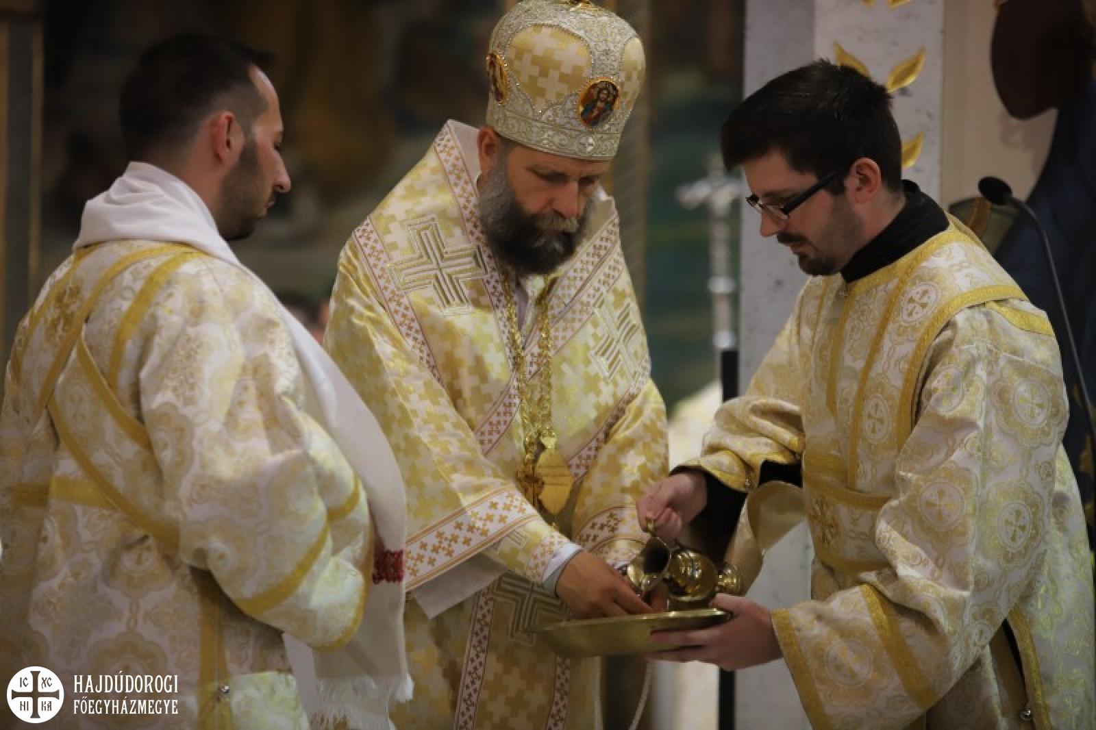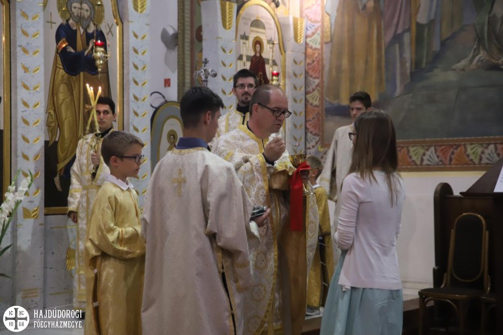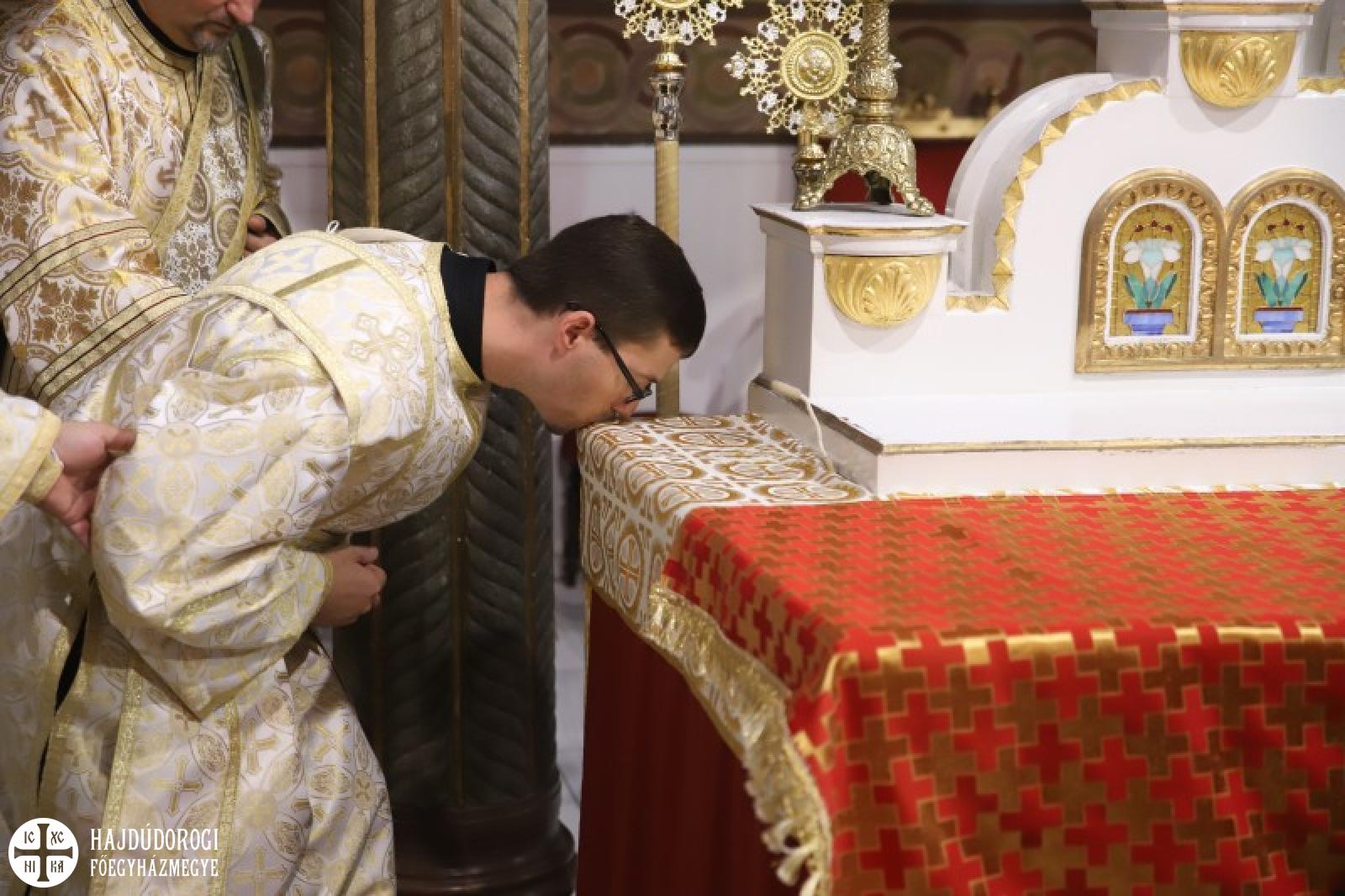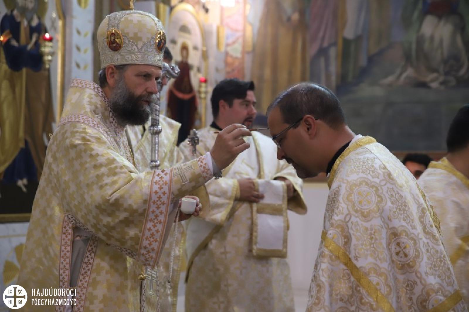 A Szent Liturgián nem feledkeztek meg arról sem, hogy Laczkó Zsolt kórházlelkészünk pappá szentelésének évfordulója volt. Ebből az alkalomból Fülöp metropolita atya felhatalmazást adott neki a papi mellkereszt viselésére, illetve egy gyönyörű ikont is ajándékozott Zsolt atyának. Az ikonon a pócsiIstenszülő mellett két kortárs szent is látható: Szent II. János Pál pápa és Szent Nektáriosz, a daganatos betegségek gyógyítója. A szertartást az ilyenkor szokásos gyümölcsáldás és miroválás zárta.