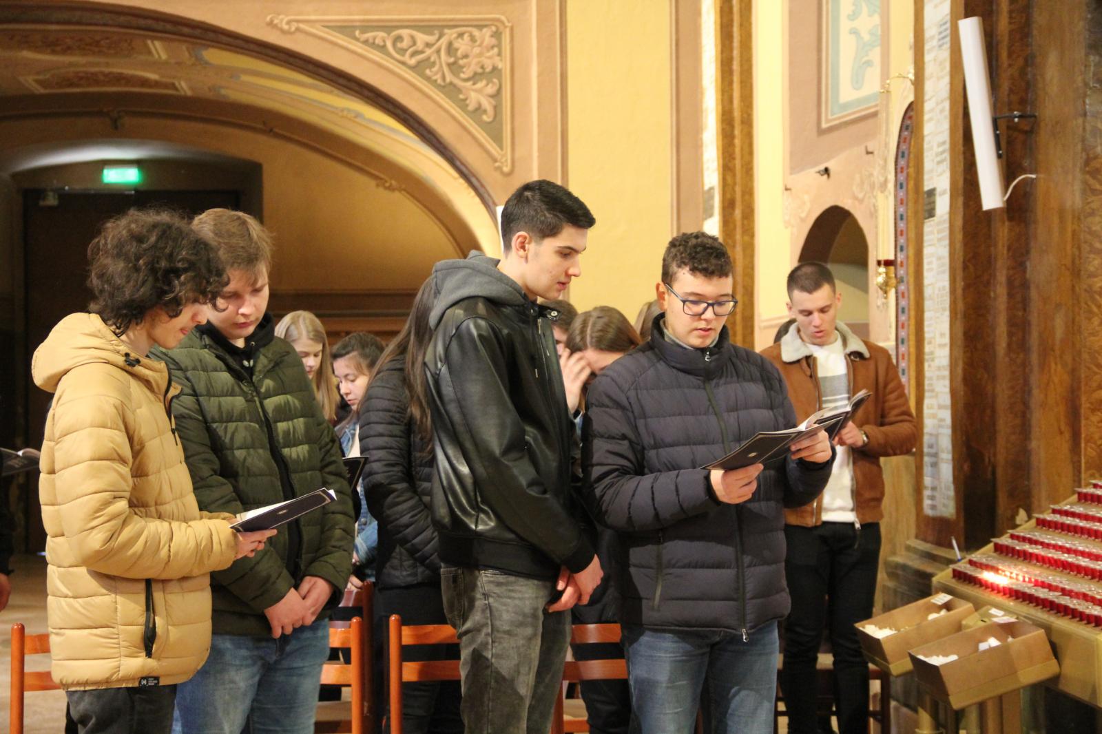 A versenyre Akathisztosz imádsággal hangolódtak lélekben a fiatalok a kegytemplomban, majd elkezdődött a megmérettetés a Családvár épületében.