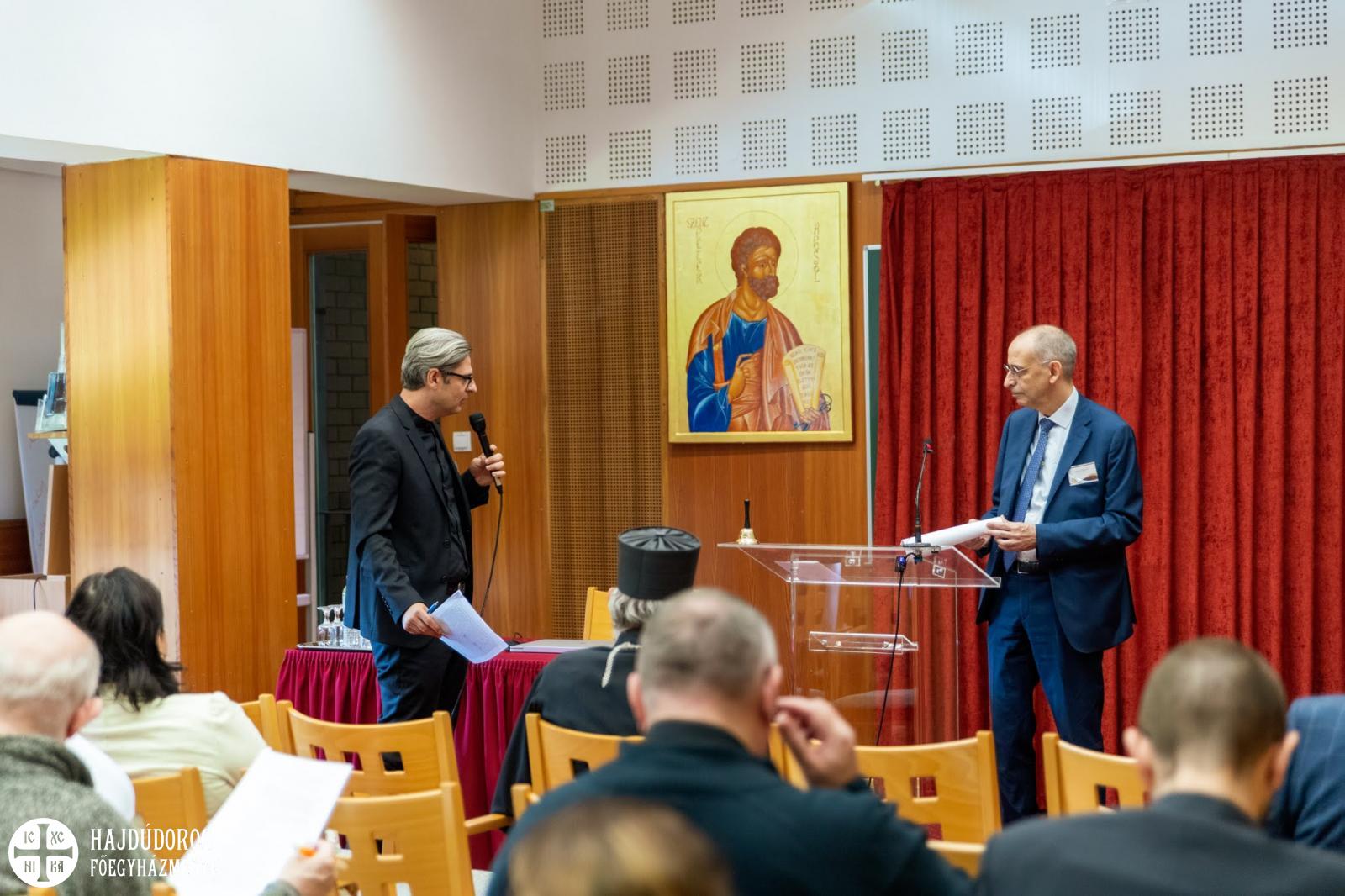 A nemzetközileg elismert magyar, olasz, ukrán, cseh, ír és horvát patrológusok, dogmatörténészek, teológusok és filozófusok részvételével megrendezett háromnapos tudományos tanácskozást Fülöp metropolita nyitotta meg, majd a Pápai Keleti Intézet Egyházi Tanulmányok karának dékánja, Željko Paša vont összefüggést az első egyetemes-, a második vatikáni zsinat, valamint a mai kor között.