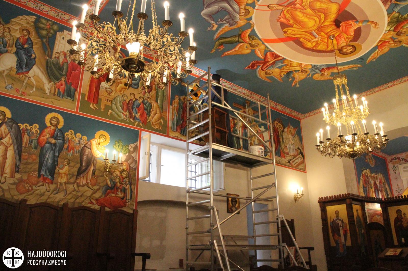 - A keleti teológia azt hangsúlyozza, hogy a megváltás, az üdvösség az nem csupán annyiból áll, hogy nem kell hordoznom a bűneim terhét, hanem Krisztus egyesül az emberrel, az Isten magára veszi a mi emberségünket végigéli egészen a szenvedéséig, a haláláig és utána pedig magával viszi a Mennyországba a mi emberi természetünket, amivel Ő egyesült. S ezért a föltámadás nyitja meg nekünk a Mennyország kapuit, Pünkösdkor pedig viszi magával a mi emberi természetünket és ígérete szerint elküldi a Szent Lelket, hogy az Isten lelkével mi emberek folytassuk azt a művet, amit az Isten a megtestesülésben elkezdett S nekünk Krisztus mellé kell állni – világított rá Fülöp metropolita arra, miként is kell értelmezni egy-egy ikont, akár, a debreceni hivatalban, akár más görögkatolikus lelki hajlékban látjuk azokat.