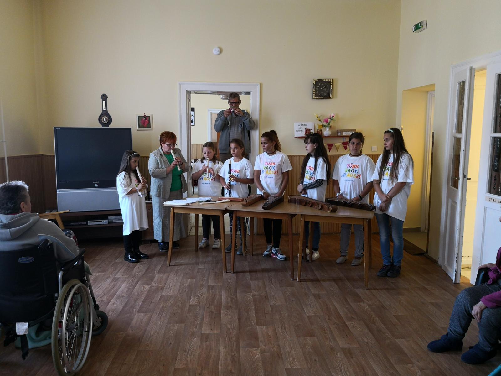Egy osztály a tavalyihoz hasonlóan az Ápolási Otthon lakóinak kedveskedtek színvonalas, megható műsorral, mely többek szemébe csalt könnyeket. Aktualitását az adta, hogy október elseje az Idősek napja volt. Már a következő találkozás időpontját is megbeszéltük az otthon vezetőjével.