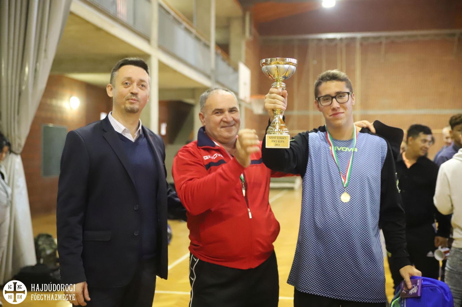 Természetesen minden résztvevő csapat jutalomban részesült, az első három helyezett csapat tagjainak nyakába érem is került, melyeket Ungvári Sándortól, a Szent Lukács Görögkatolikus Szeretetszolgálat igazgatójától vehettek át a fiatalok. Különdíjakat is bezsebeltek a focisták: a gólkirály Lakatos Gergő, a legjobb kapus Darók Bence, a legjobb mezőnyjátékos pedig Szabó Richárd lett. Gratulálunk!