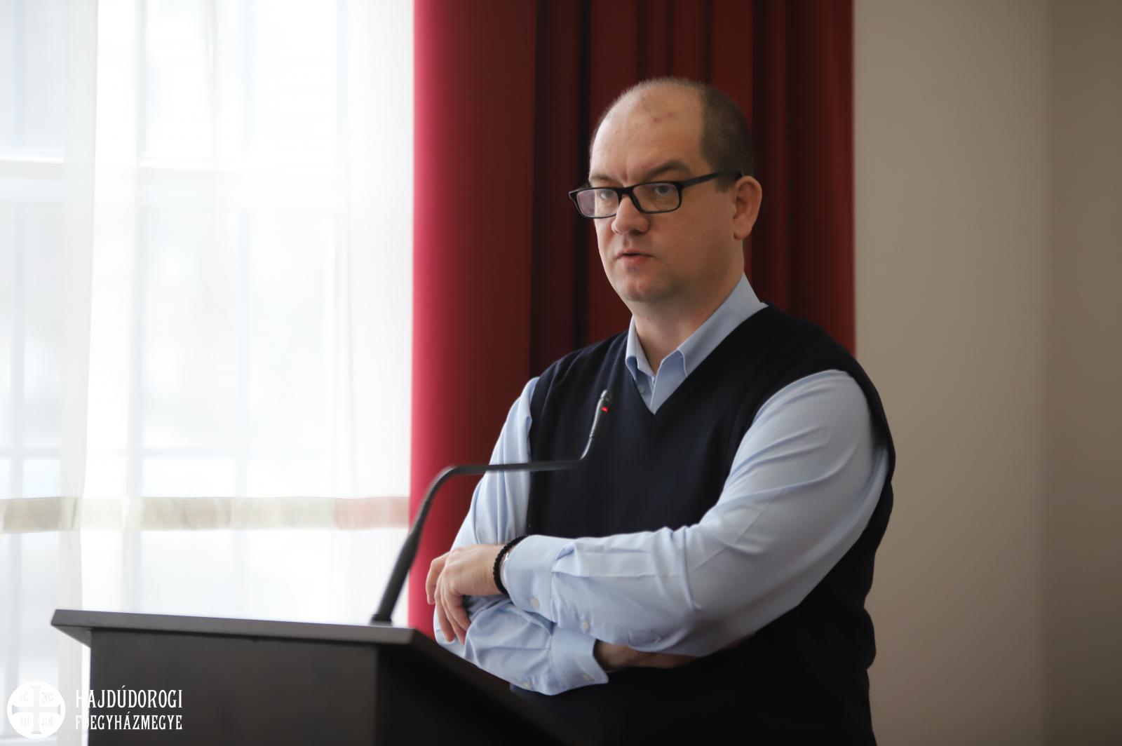 Czövek Éva az oktatási hivatal vezetőjének köszöntője után Seszták István főhelynök atya gondolatait hallhatták a résztvevők. Felszólalásának első fele nagyböjthöz is igazodva lelki táplálékként szolgált. István atya, mint mondta, a vezetői feladat egyfajta teremtői munkálkodás, mégpedig a Jóisten teremtő munkálkodásának a része, és elsősorban azért, mert ezzel valami új megalkotása a cél.