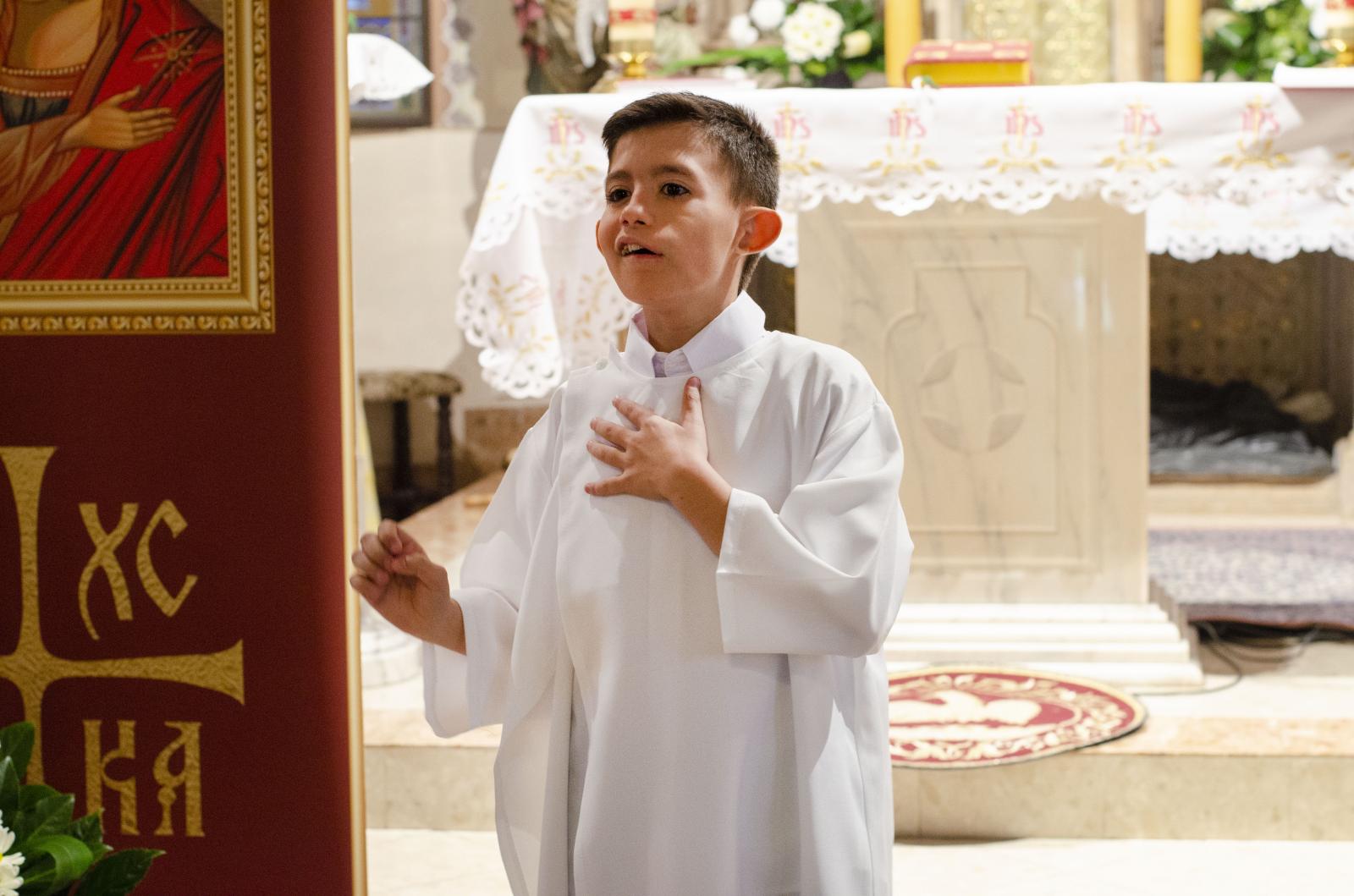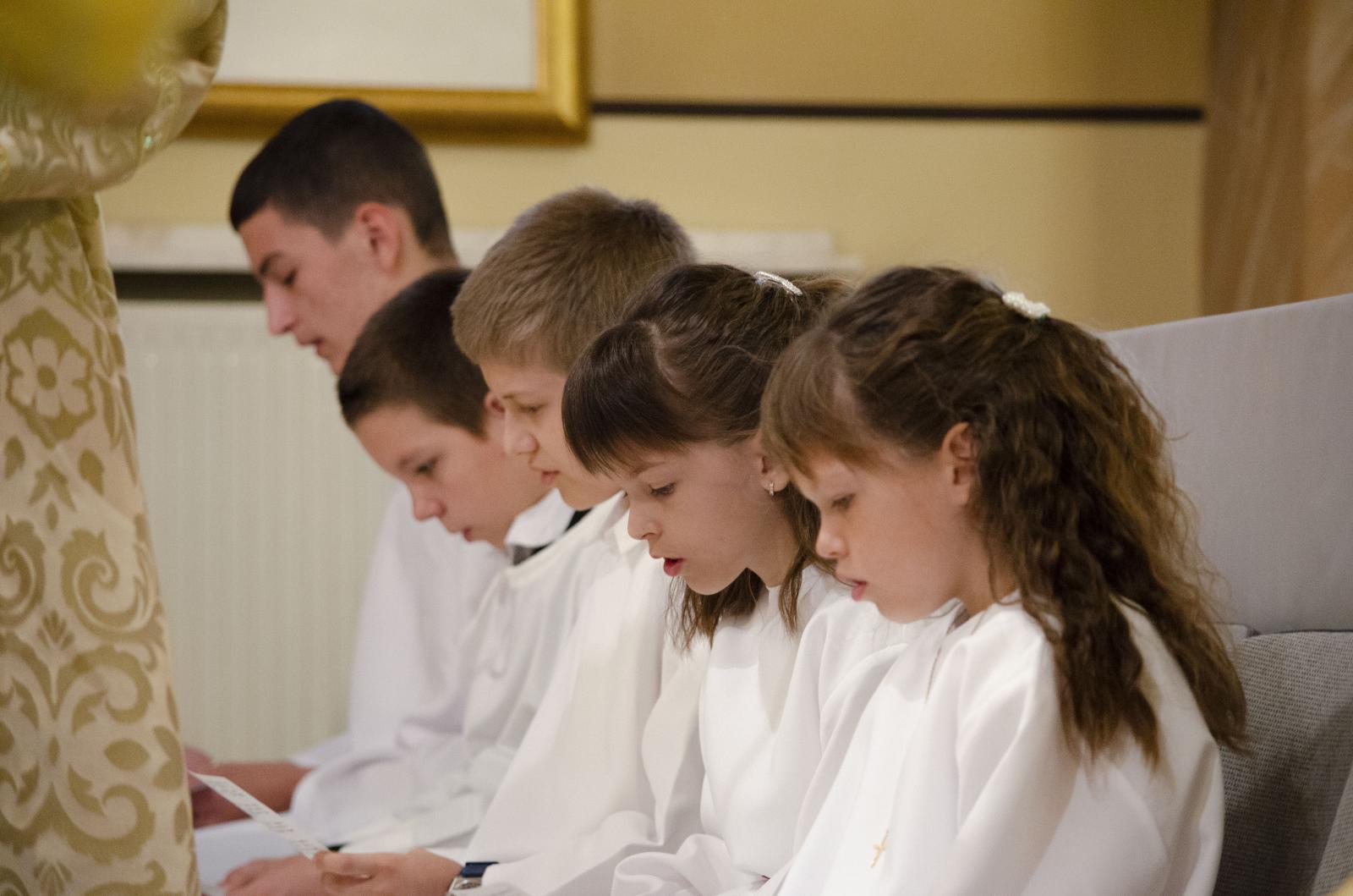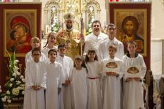 A Szent Liturgia végén a gyerekek verset mondtak és köszöntötték a szülőket, vendégeket. A főpásztort Nagy Rita Éva köszöntötte a szülők nevében.