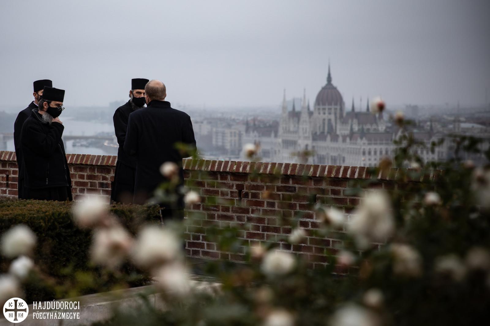 A három püspököt elkísérte Dr. Seszták István is, a metropóliai hivatal vezetője. Elsőként átadták nekik a Debrecenből hozott betlehemi lángot. Majd egy szépen zengő kántáló ének mellett a karácsony ünnepének ikonját és a metropólia néhány ünnepi kiadványát.
