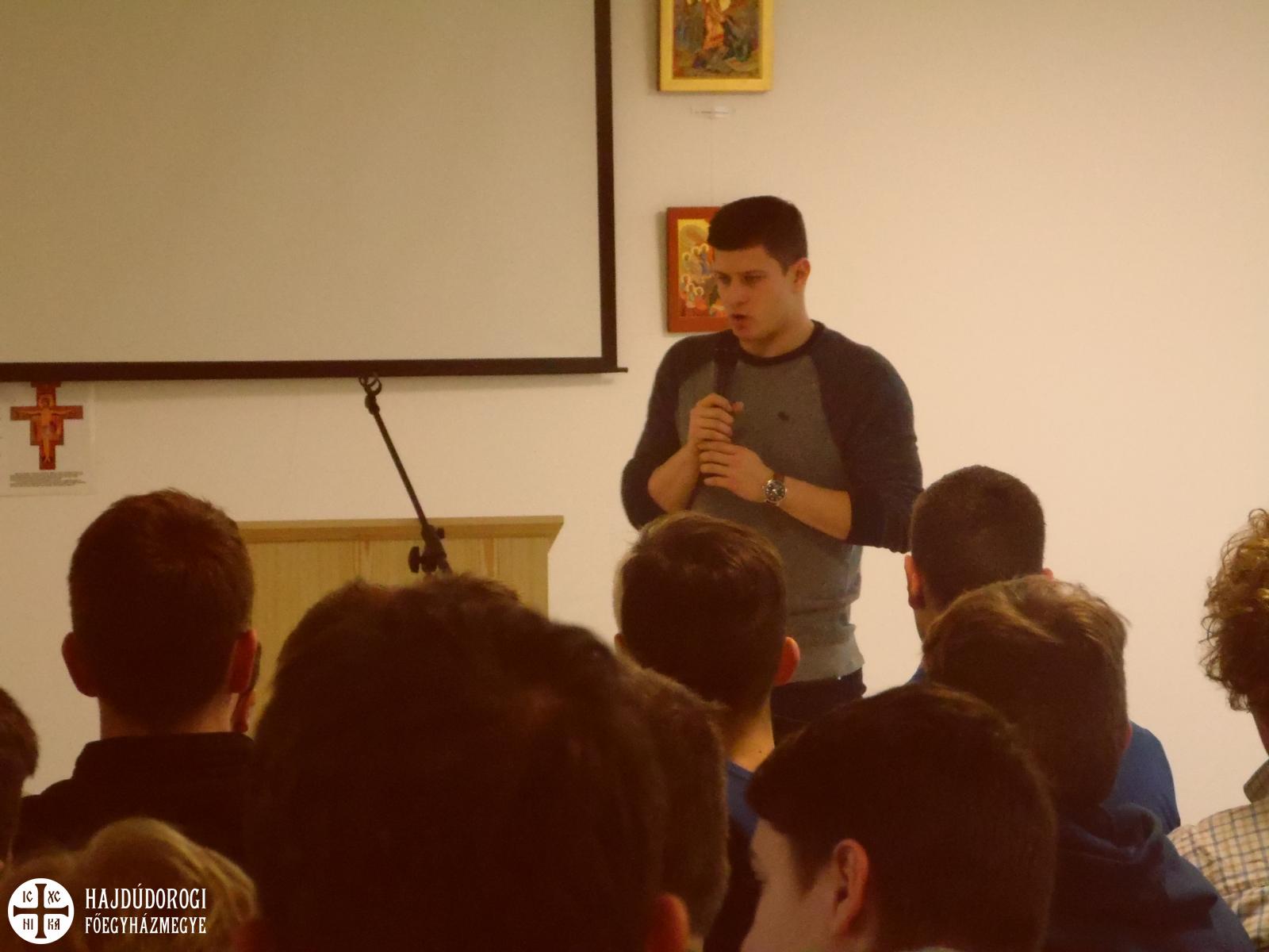 A liturgia után csapatokba rendeződve az ifjú ministránsok a meghívott előadókkal találkozhattak; Gyurta Dániel olimpiai bajnok úszó, Pindroch Csaba színművész, és Kiss László görögkatolikus áldozópap "Én is voltam ministráns" címmel tartottak előadást a hivatásról, szolgálatról, hitről, annak nehézségeiről, a célokról, a kitartásról és az erőről. Gyurta Dániel az elszántság, a következetesség, és a lelki egyensúly megtartásának fontosságáról beszélt a fiataloknak. Pindroch Csaba előadásában a gondviselés megértésének és a hit megélésének példáját hallhatták résztvevők. László atya pedig igazán „gyakorlati” ismeretekkel látta el a kis ministránsokat. Mobiltelefonos applikáció is készült a találkozóra: az előadásokkal kapcsolatos kérdésekre ezen keresztül kellett válaszolni. A kispapok által vezetett négy csoport közül a nyertes csapat ajándékot vehetett át a találkozó végén.