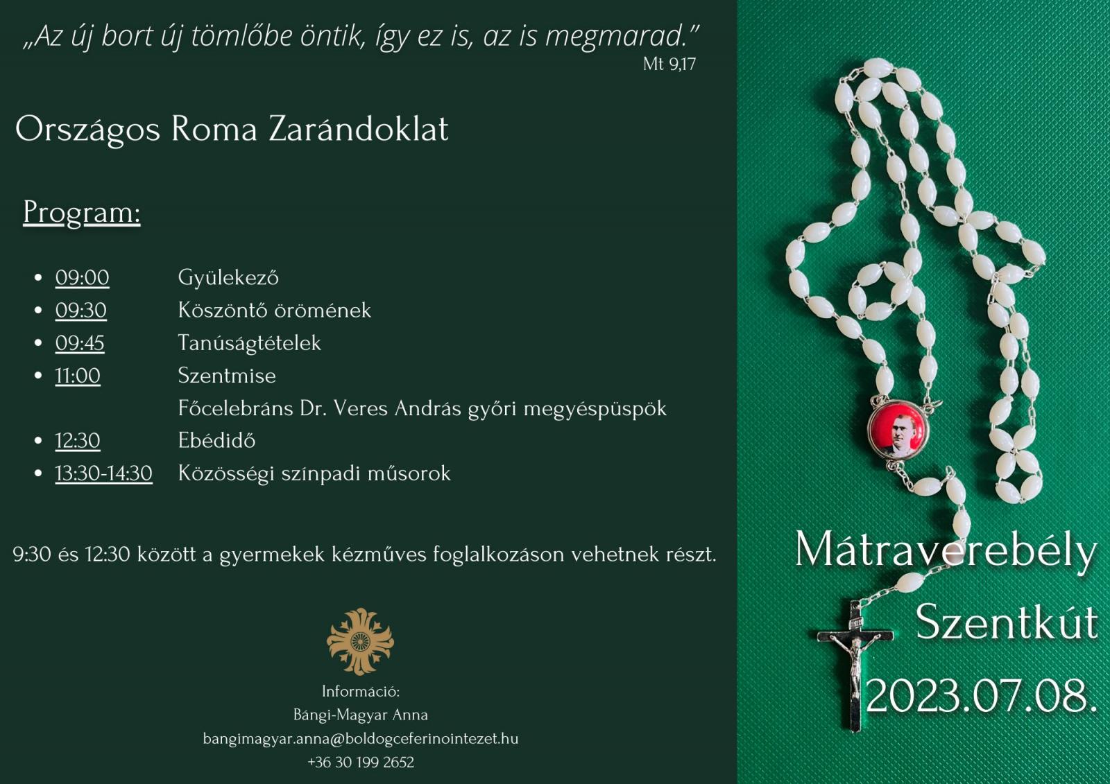 Idén július 8-án 9:00-kor kezdődik az országos roma zarándoklat Mátraverebély-Szentkúton, amelyen Lakatos Péter atya, országos cigánypasztorációs referens, görögkatolikus szervezőlelkész vezetésével vehetünk részt. A zarándoklat főcelebránsa és szónoka Dr. Veres András győri megyéspüspök lesz.