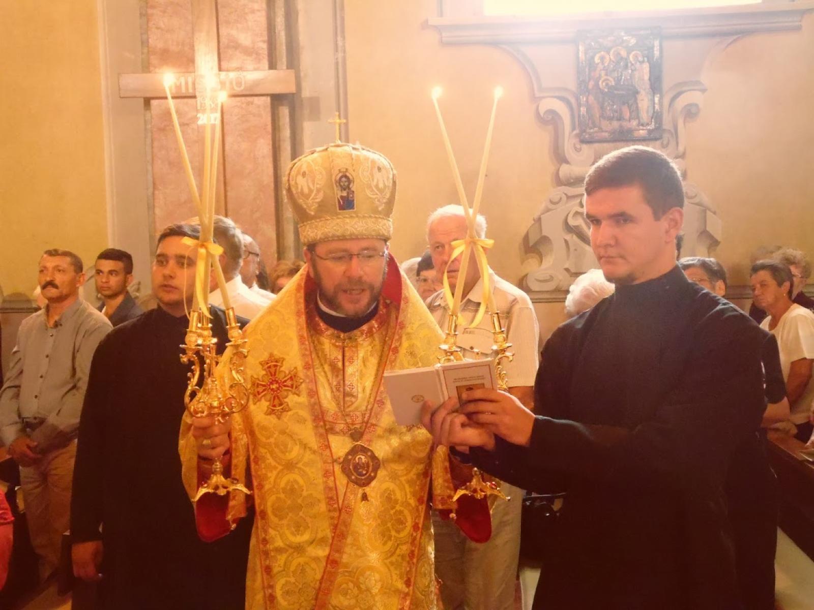 Az ünnepi Szent Liturgiát ószlávul és magyarul Níl Jurij Lushchak, munkácsi görögkatolikus segédpüspök vezette, a miskolci és munkácsi egyházmegyék papjainak koncelebrációjával. A segédpüspök, aki először látogatott Sajópálfalára, homíliájában a kegyképre tekintve beszélt saját megérintettségéről is. Mária arcáról a kedvesség és a törődés mellett kicsit szomorúság is tükröződik - mondta Trescsula László atya tolmácsolásában a segédpüspök. „Ahogyan Mária életében, a mi életünkben is ez a kettősség jár együtt. Az Istenszülőre tekintve azonban erőt merítünk saját keresztünk hordozásában.” Mária szívében az Isten dicsérete és Isten akarata volt az első, emlékeztetett a segédpüspök, majd felidézte Szent István személyét is, hiszen a búcsú napja a Julián naptár szerint Szent István emléknapja is volt egyben. Szent István király mindig irgalommal volt a szegény emberek iránt, „keze soha nem záródott be az őt kérőktől”, azért, mert nála is, mint Mária életében, Isten állt az első helyen. „Ez felhívás számunkra; megdicsőíteni Istent a mi életünkkel” és átadni hitünket gyermekeinknek. A segédpüspök azzal az óhajjal zárta beszédét, hogy mindannyian meg tudjuk tapasztalni azt az örömöt, hogy „Mária velünk van.”