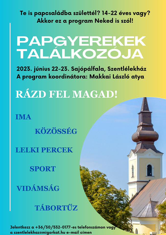 Jelentkezés és bővebb információ: a szentlélekhaz@migorkat.hu email címen vagy telefonon +36 30 532 0177 számon.