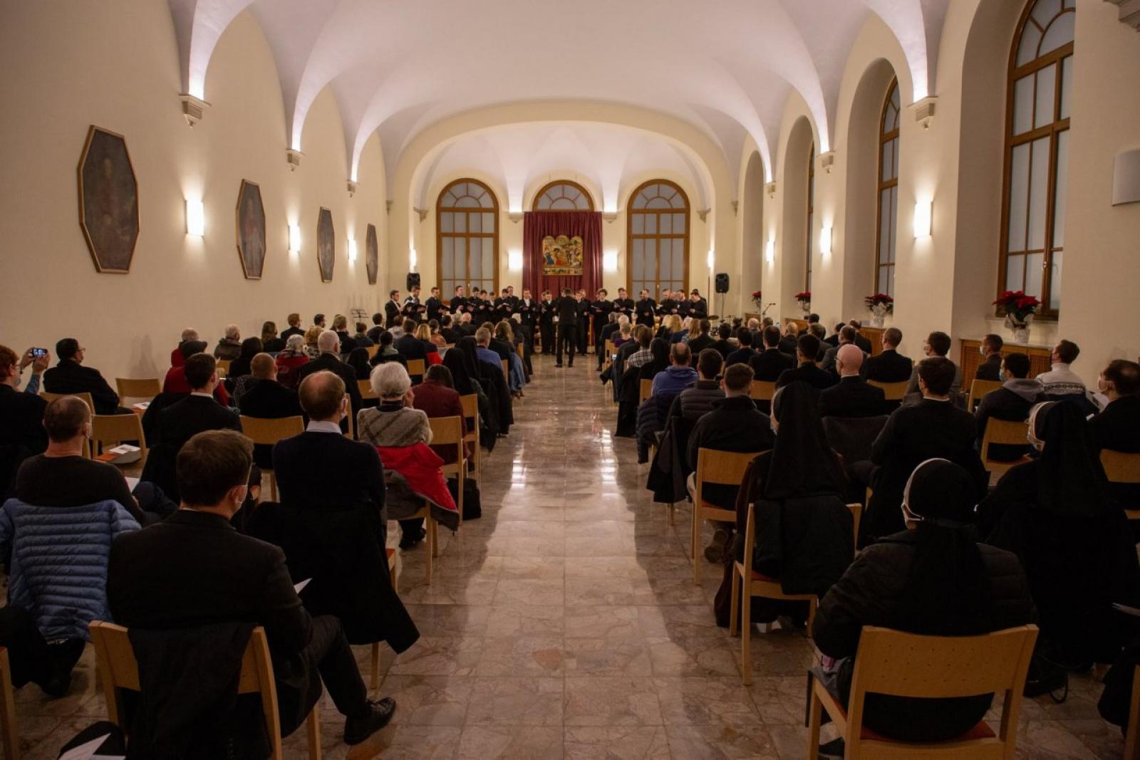 A mindkét alkalommal teltházas hangversenyen a kollégium lakóinak évfolyamtársai, római ismerősei, barátai, valamint meghívott egyházi és világi méltóságok vettek részt. Fellépett a kollégium egyesített kórusa, valamint a növendékek által alkotott kisebb nemzetiségi kórusok. Így a résztvevők német, magyar, horvát és szlovén adventi és karácsonyi énekeket egyaránt hallhattak. Az intézmény lakói mellett a Pápai Görög Kollégium magyar származású görögkatolikus papnövendékei, illetve a római Melanchthon Intézetben lakó német és magyar protestáns teológushallgatók is énekeltek.