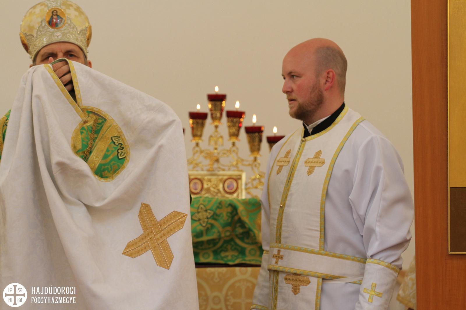 Kocsis Fülöp érsek-metropolita atya prédikációját annak a hangsúlyozásával kezdte, hogy amikor az isteni Szent Liturgiában valakit áldozópappá szentelünk, elsősorban az Isten átalakító erejéről kell beszélnünk, gondolkoznunk. A Lélek átformál bennünket, ahogy annak idején tudatlan halászemberekből hittudósokat és igehirdetőket formált.