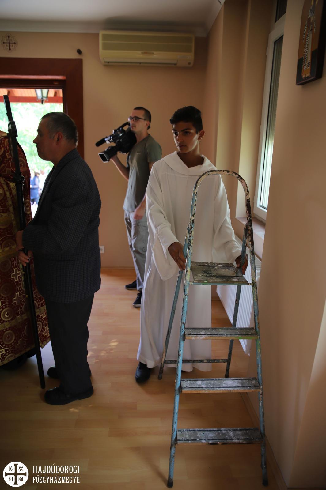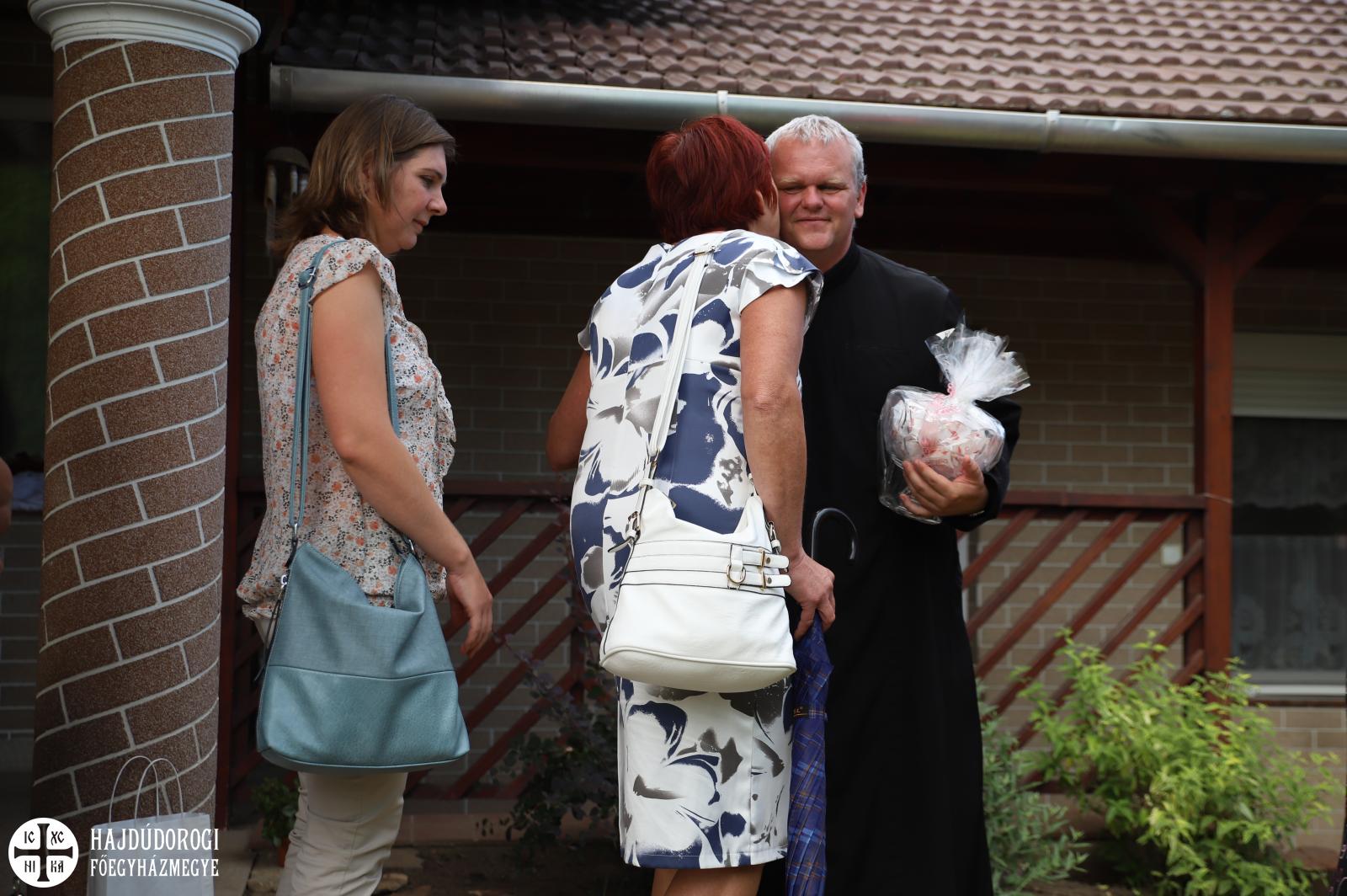 Az istentiszteletet követően kísérte át az új parókus érsek-metropolita atyát, a paptársakat és a híveket új otthonába, ami a város egykori orvosáról Nikodémusz Istvánról elnevezett utcában található. (Megjegyzendő, hogy az 1892-ben született és 1955-ben elhunyt gyógyító görögkatolikus vallású volt és 34 évent át állt a hajdúnánásiak szolgálatában)A szentelés előtt Szaplonczay Gergely atya történelminek nevezte a napot és megköszönte azoknak, akik eljöttek és imádkoztak azért, hogy ez megvalósulhasson.
